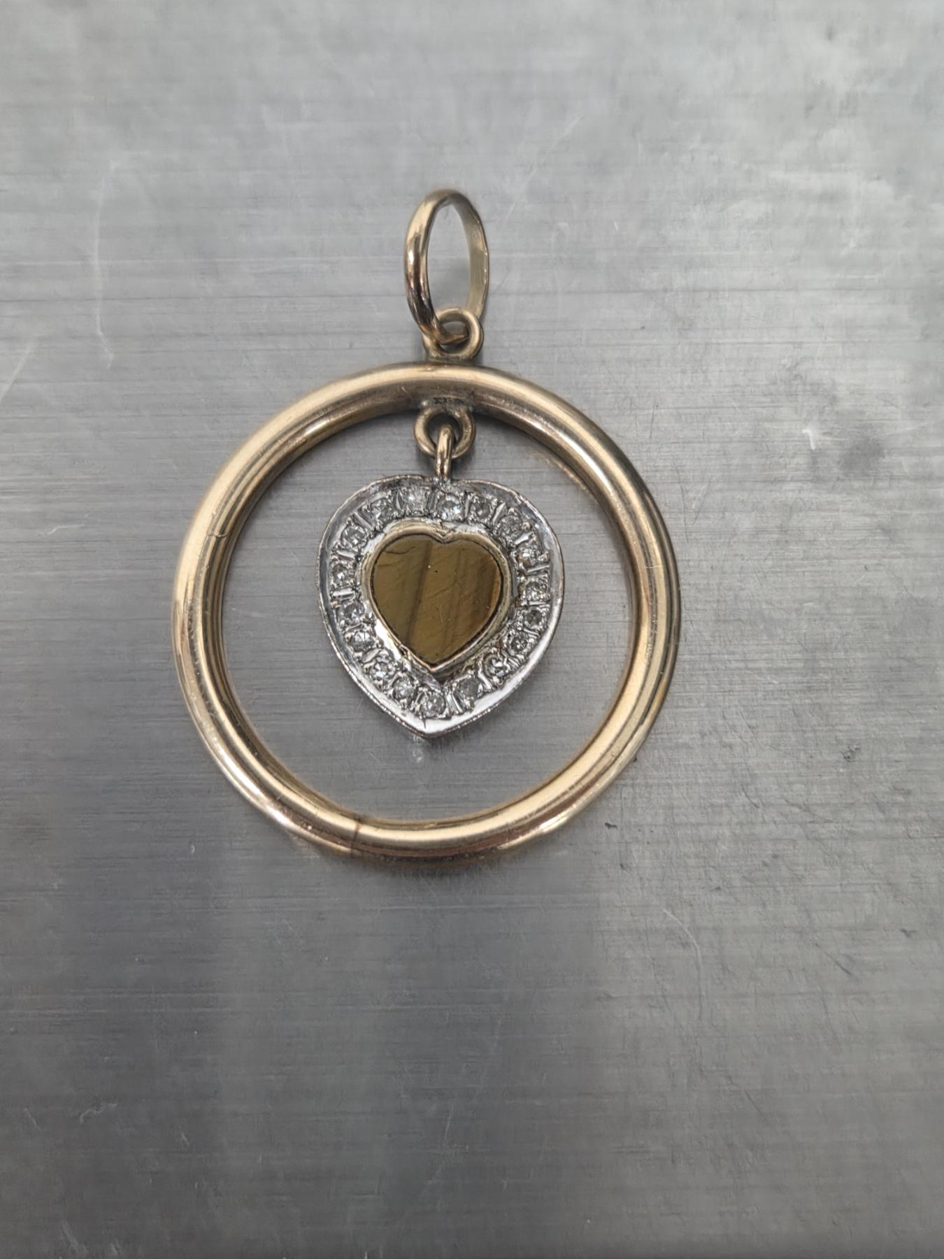 14k Gold Heart Pendant With Accent Stones. Very Nice Condition! 3.6g Total Weight