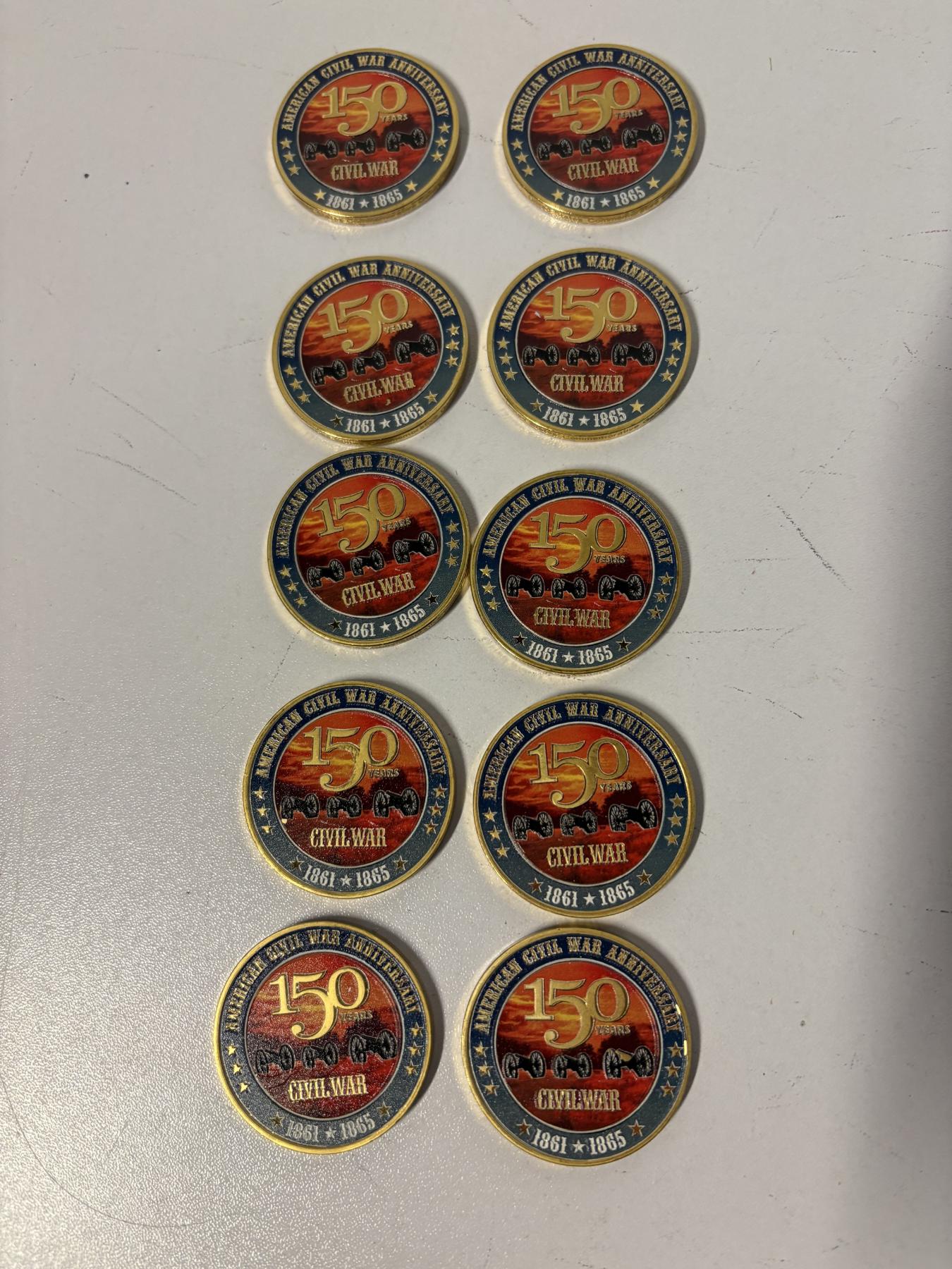 150th Anniversary Civil War Coins - Set of 10 - 1861 -1865
