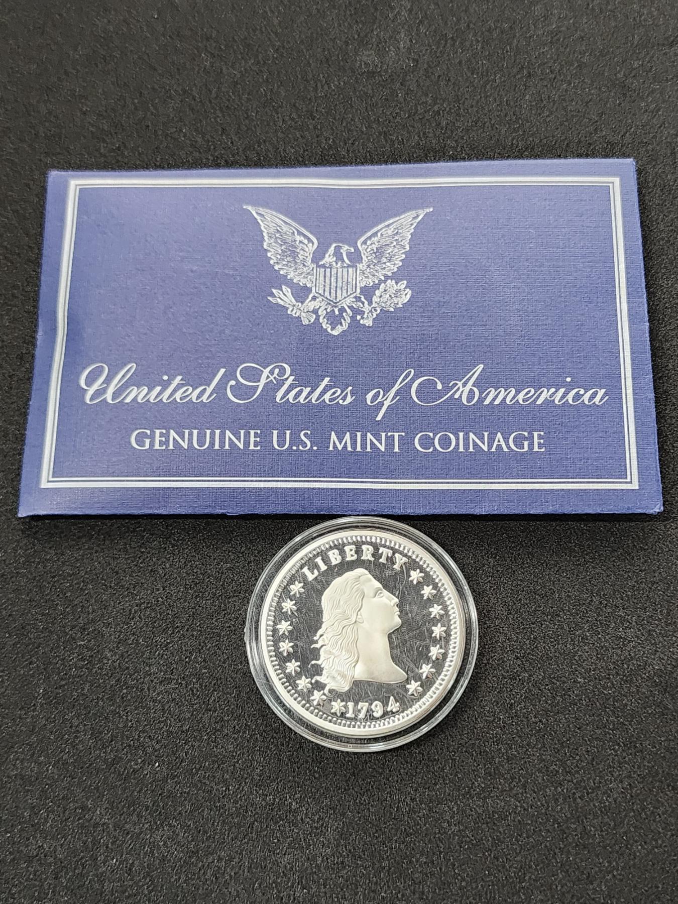 1794 U.S. Flowing Hair Silver Dollar Replica - 1 Troy oz .999 Fine Silver