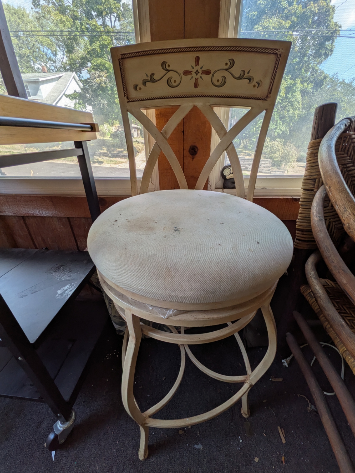 18"x42" Heavy Duty Off White Metal Swivel Stool W Padded Seat