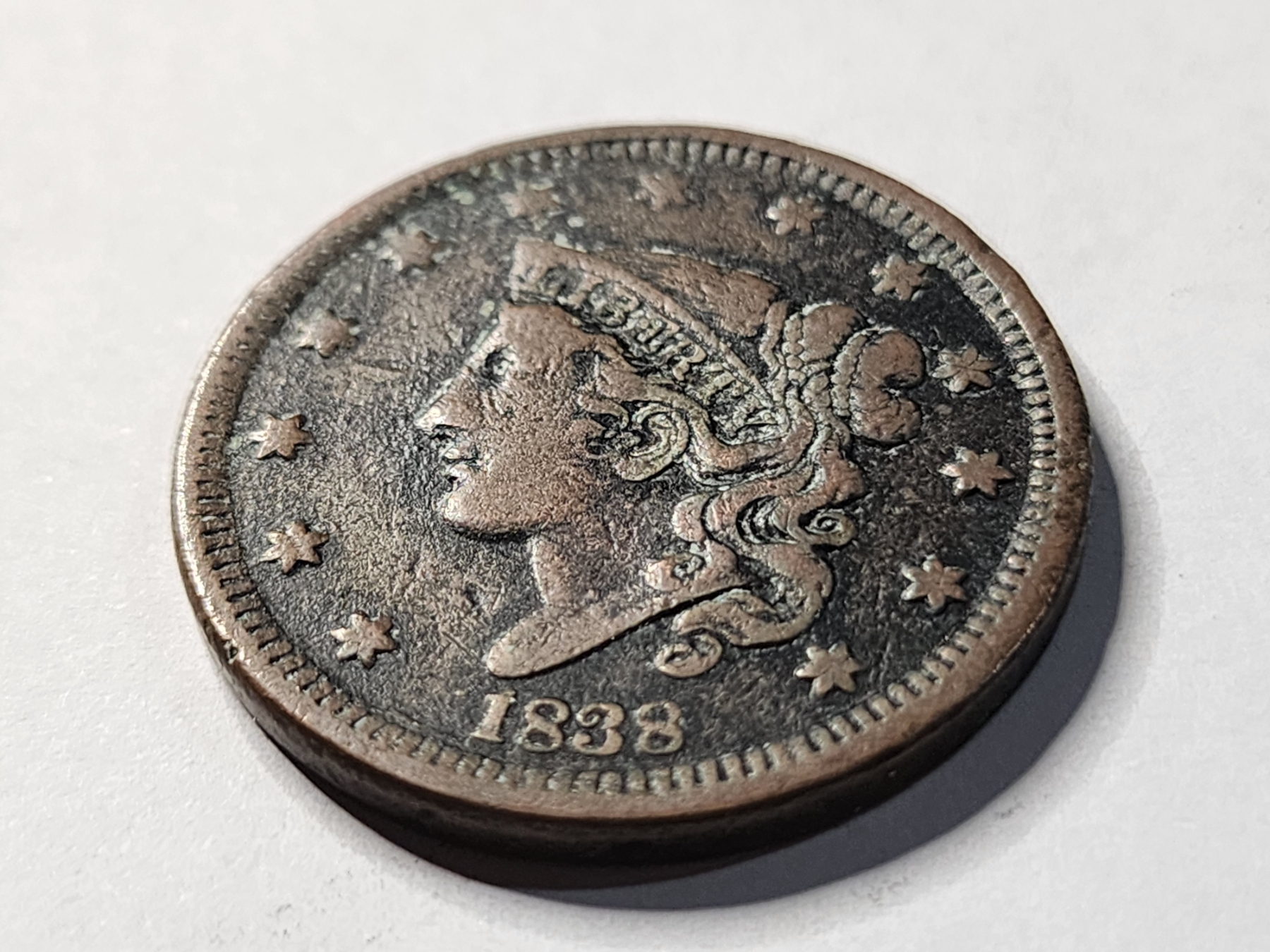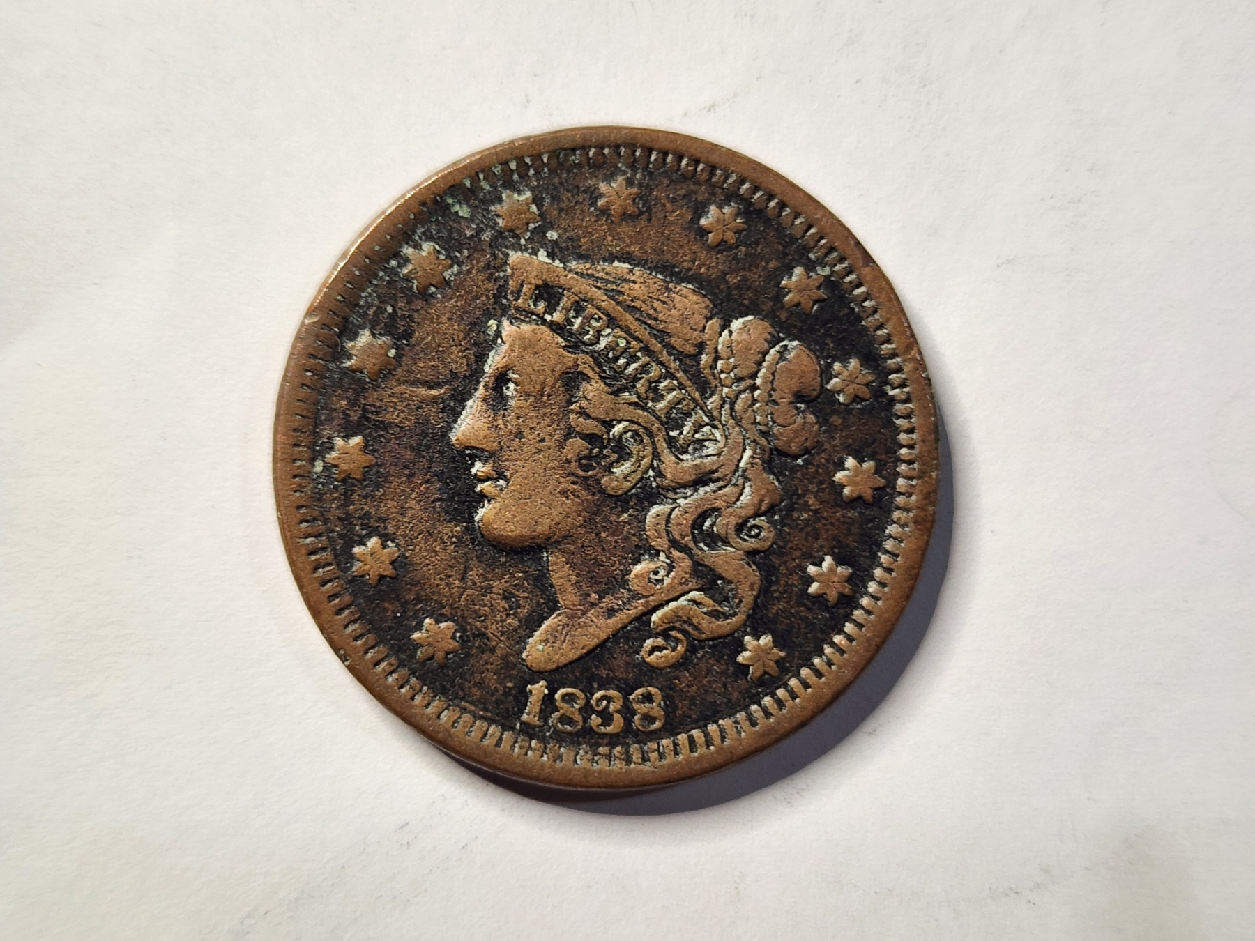 1838 United States Coronet Head Large One Cent Coin in Great Condition!