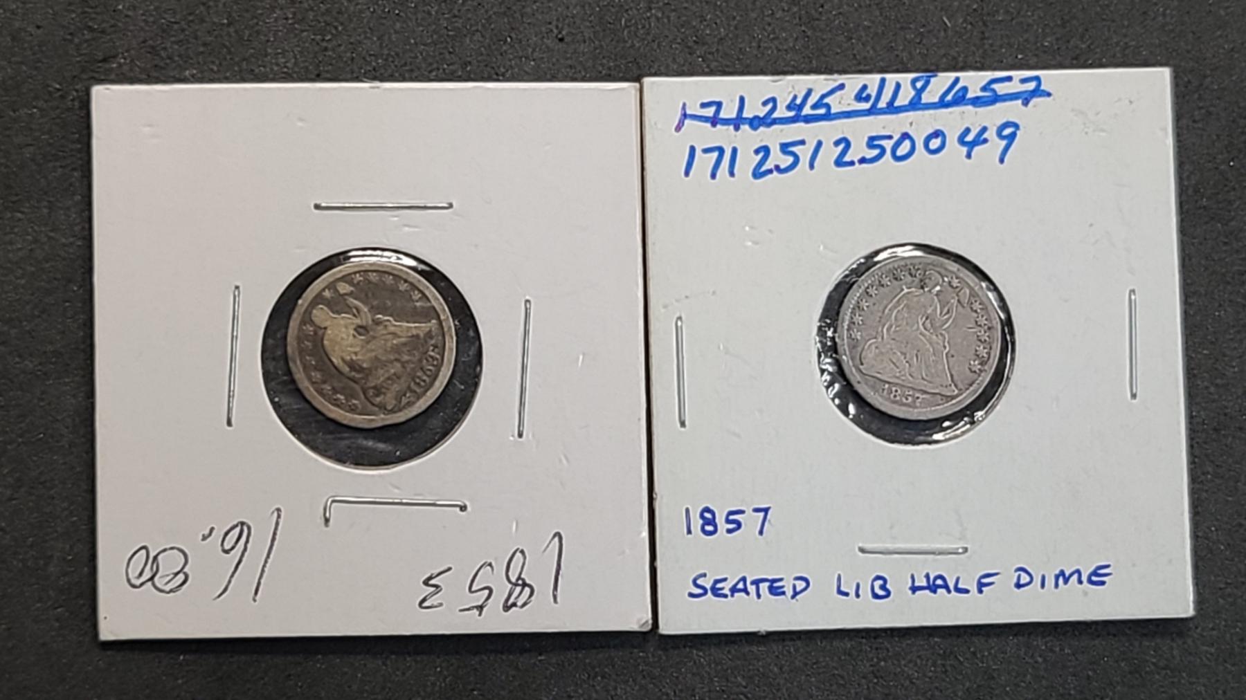 1853 & 1857 U.S Seated Liberty 90% Silver Half Dimes - Face Value: $0.10