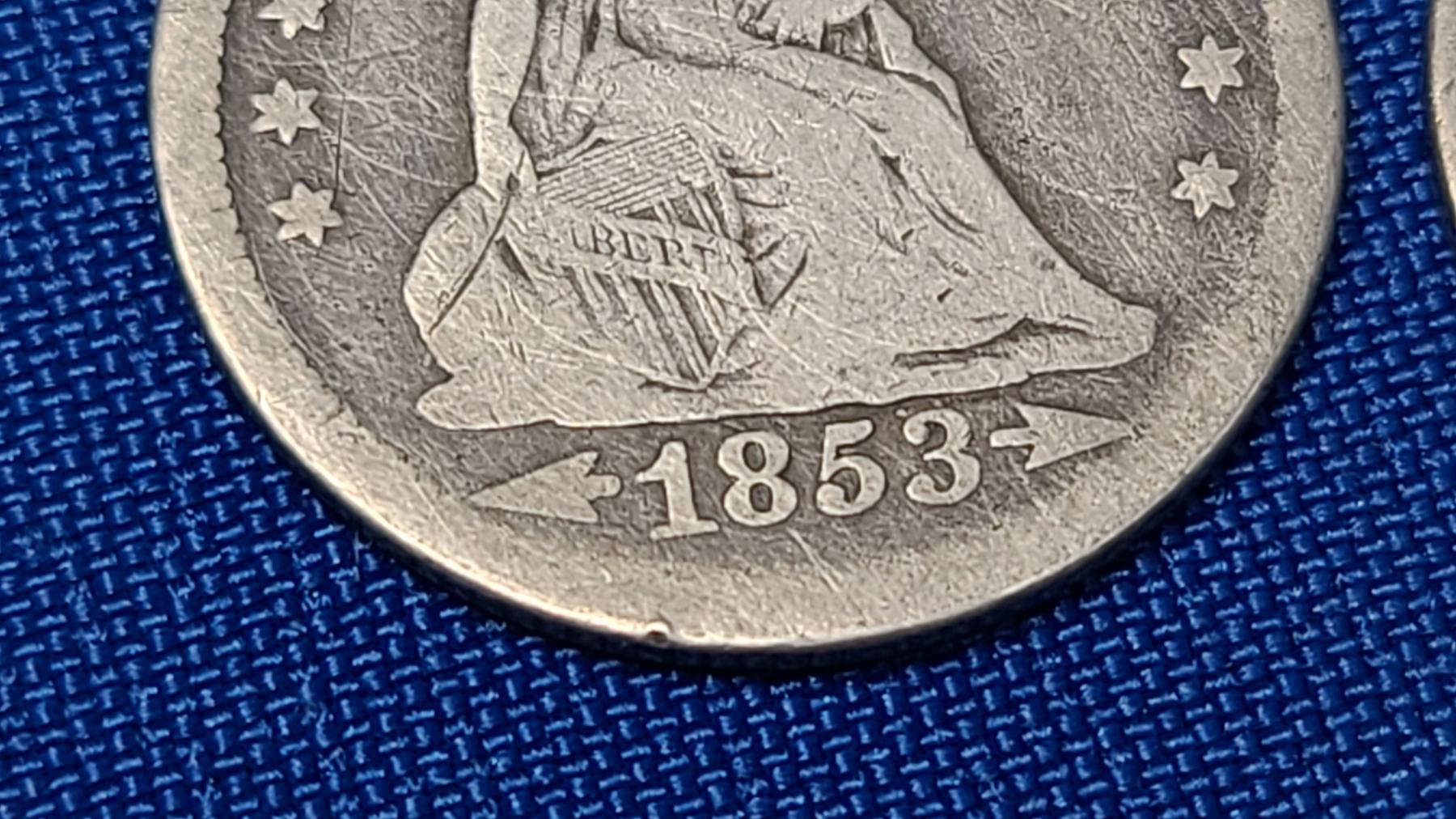 1853 & 1876 90% Silver Liberty Seated Quarter With Arrows - Face Value: $0.50