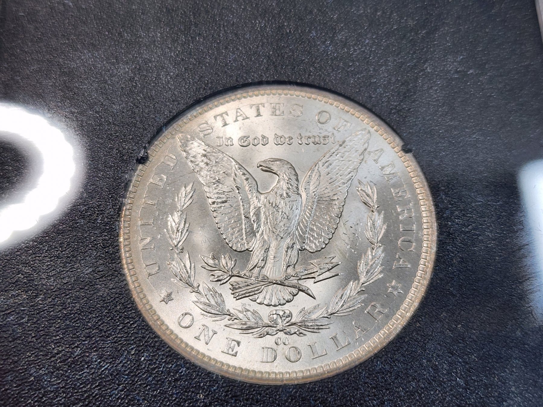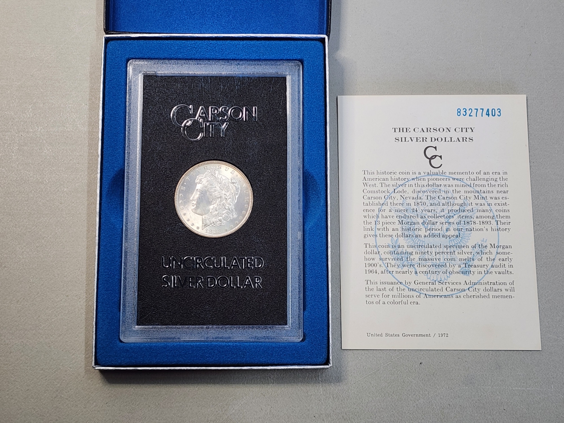1883 Carson City Uncirculated Morgan Silver Dollar in Display