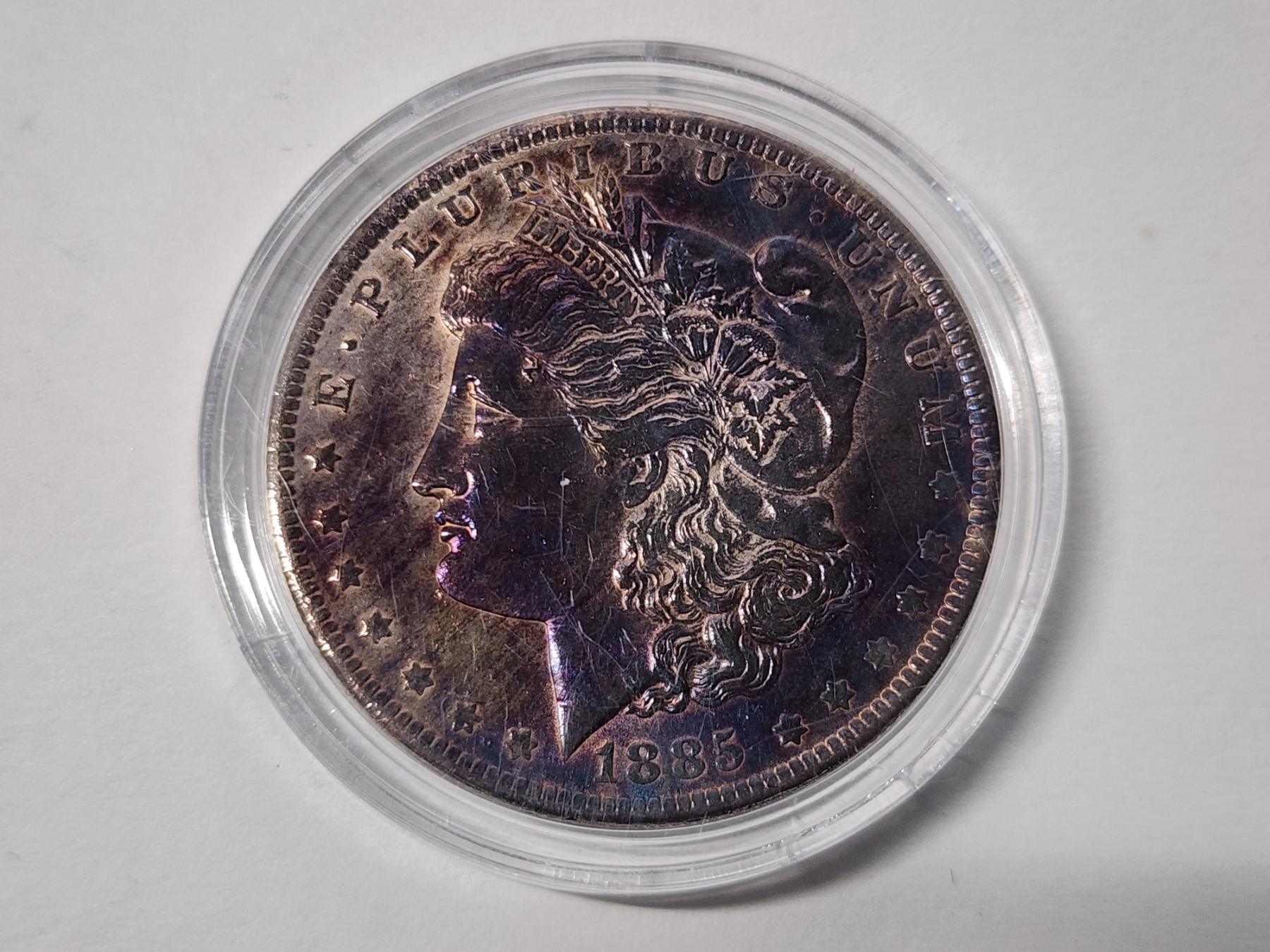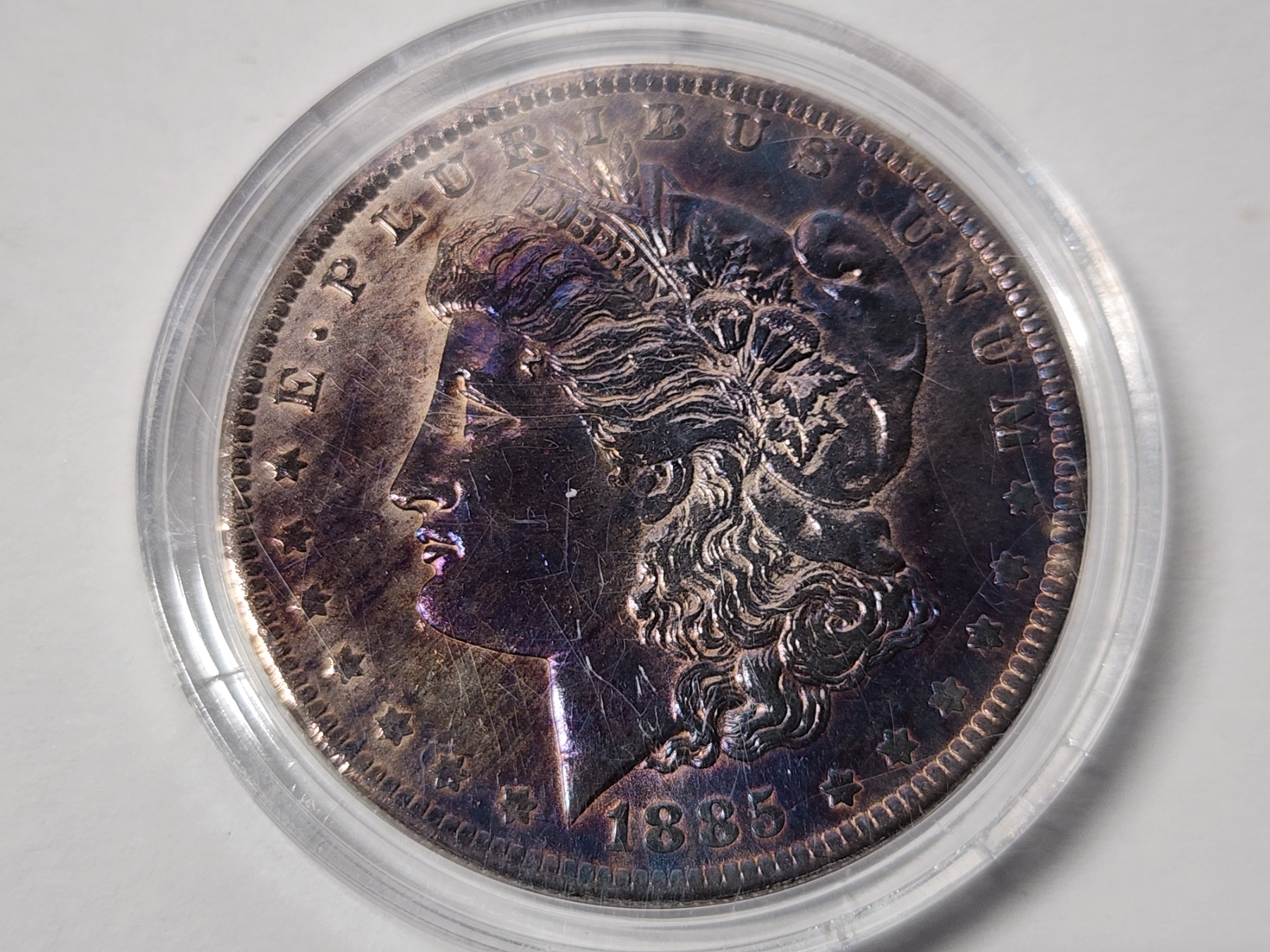 1885-O Morgan Silver Dollar - Beautiful Unique Blue & Purple Toning - 90% Silver