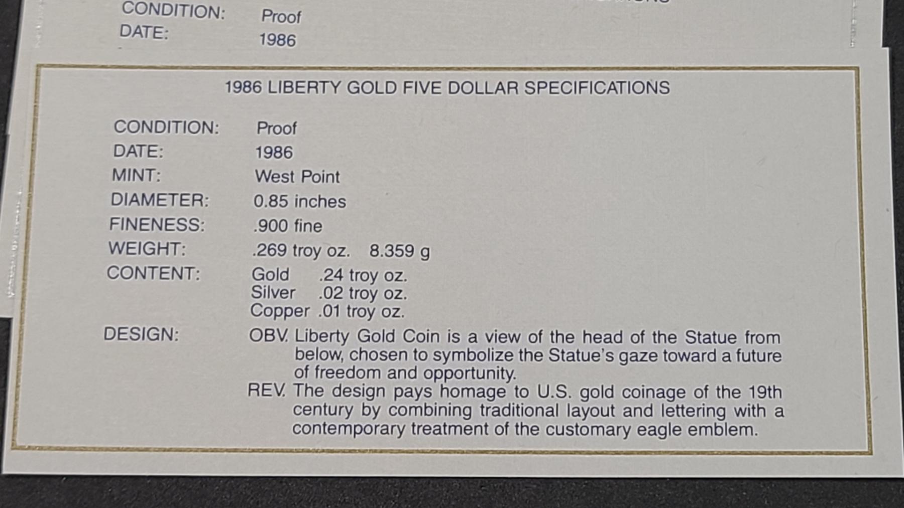 $5 Gold Statue Of Liberty Coin AGW: 0.2419 OZ
