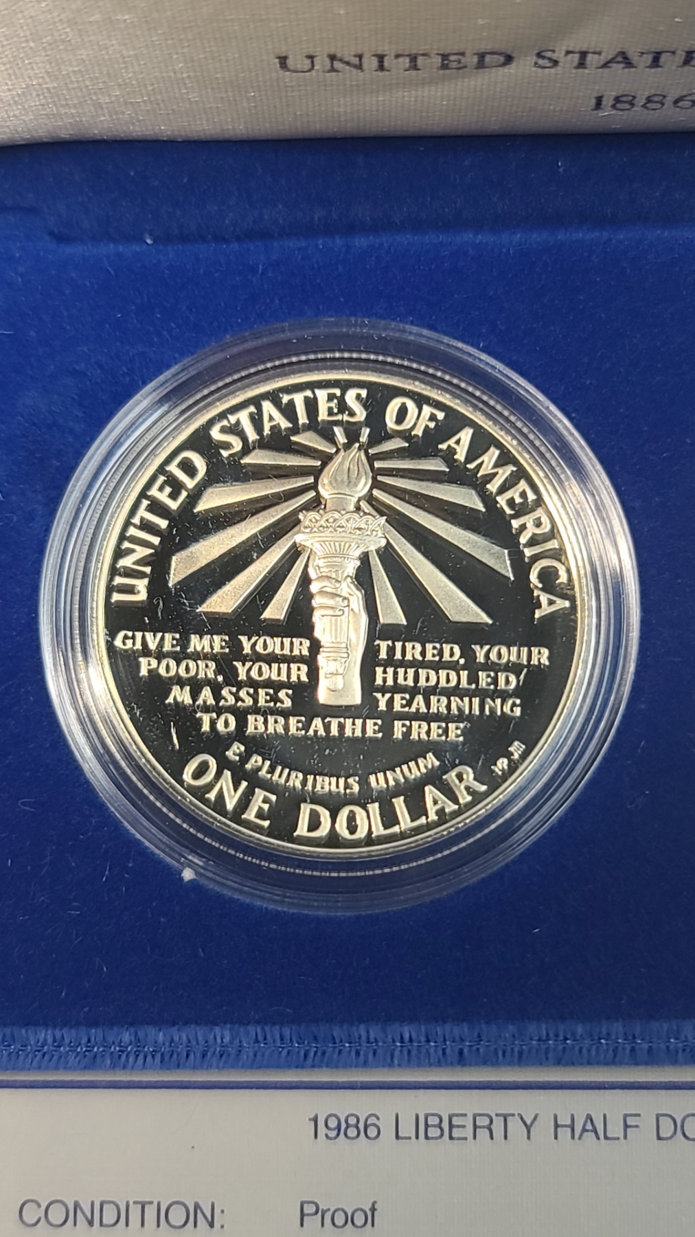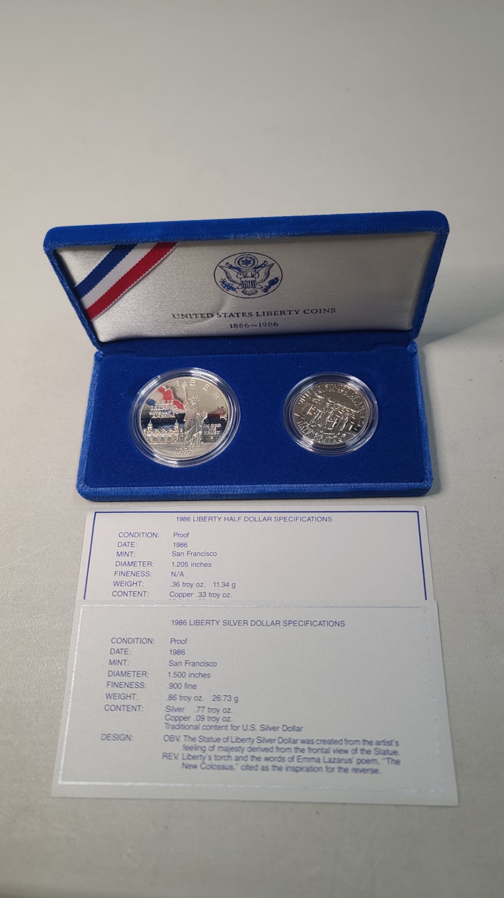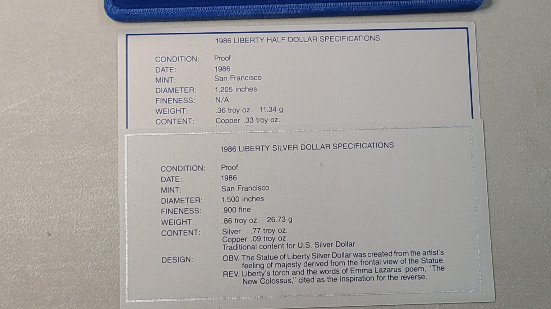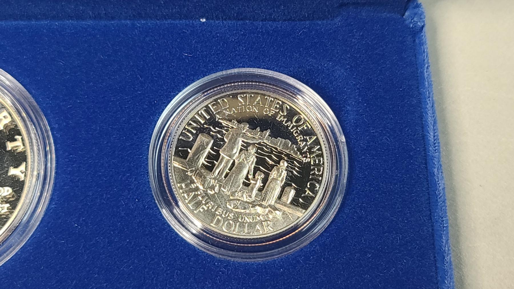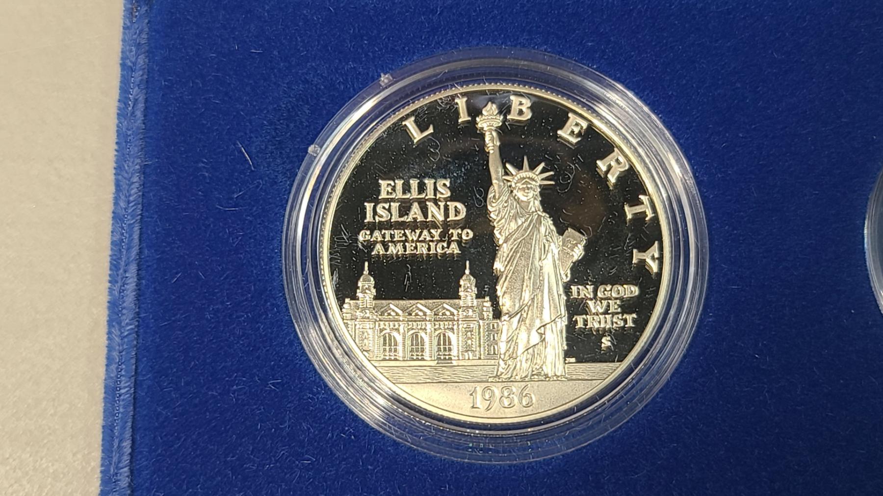 1886-1986 U.S Mint Liberty Commemorative Coin Set Featuring Ellis Island 90% Silver Proof Dollar