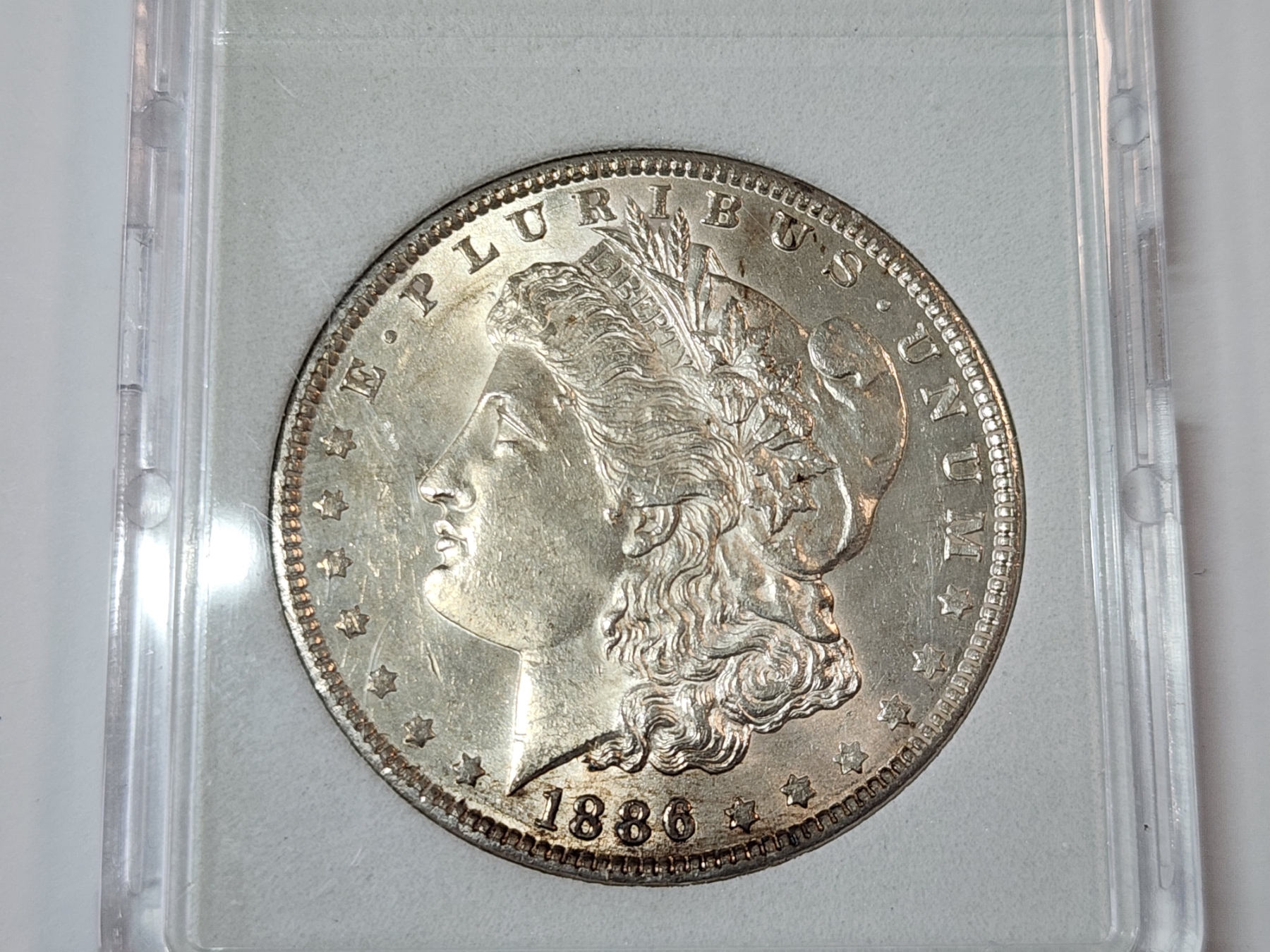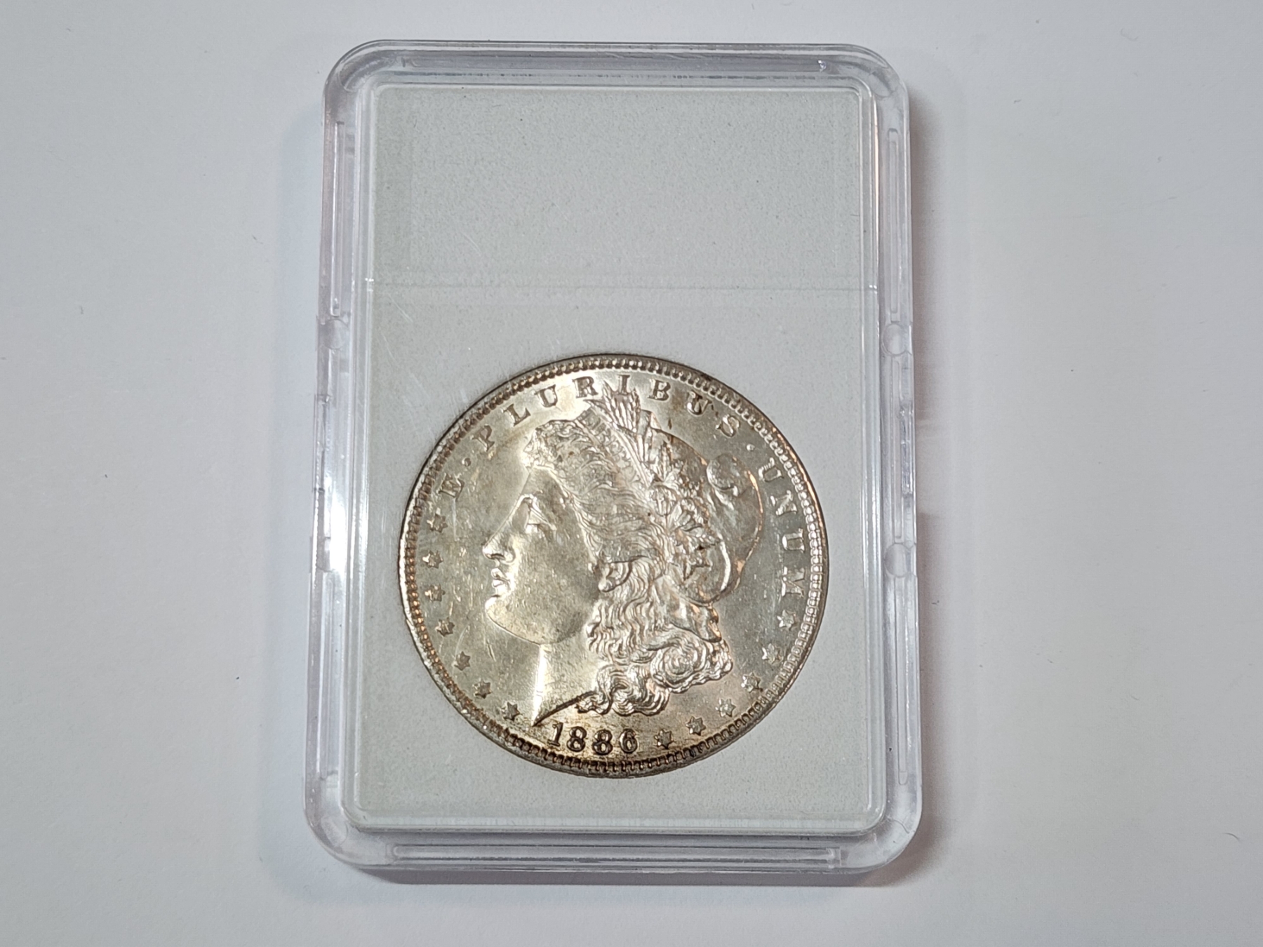 1886 90% Silver Morgan Dollar in Protective Slab Holder