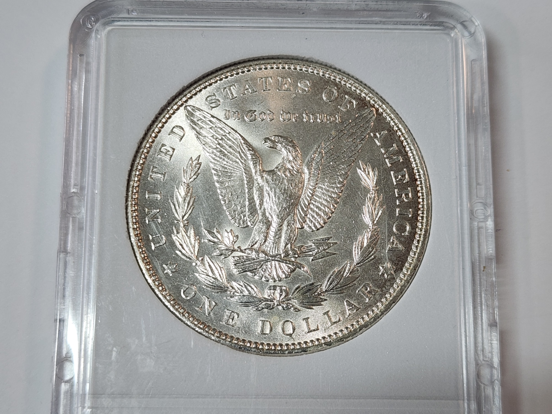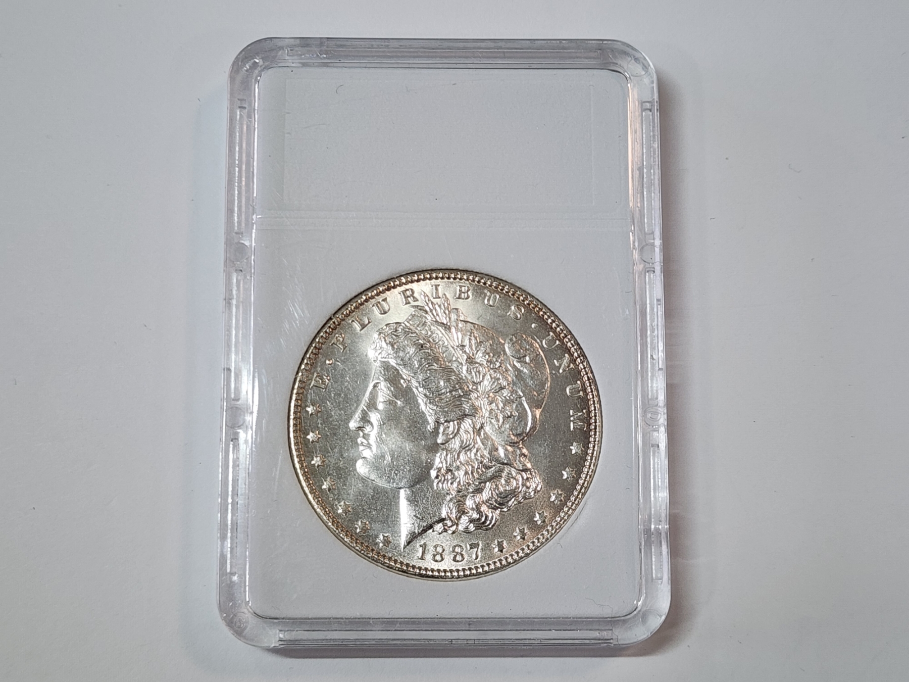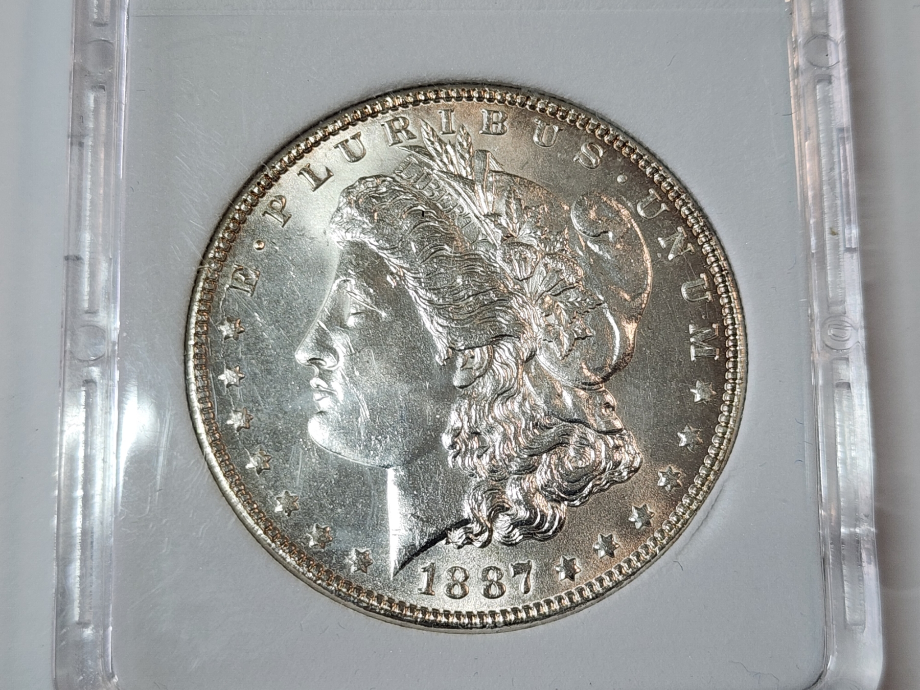 1887 90% Silver Morgan Dollar in Protective Slab Holder