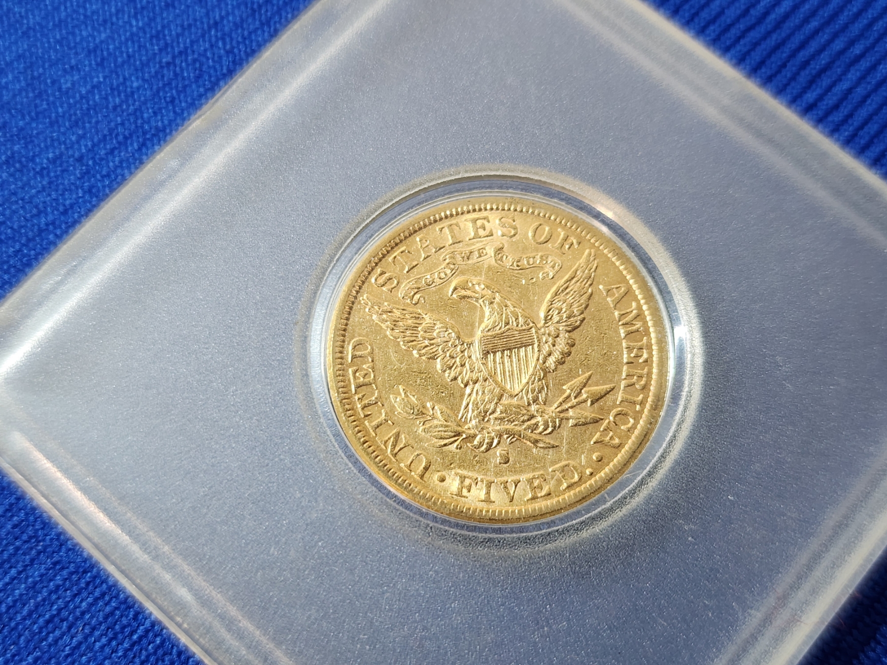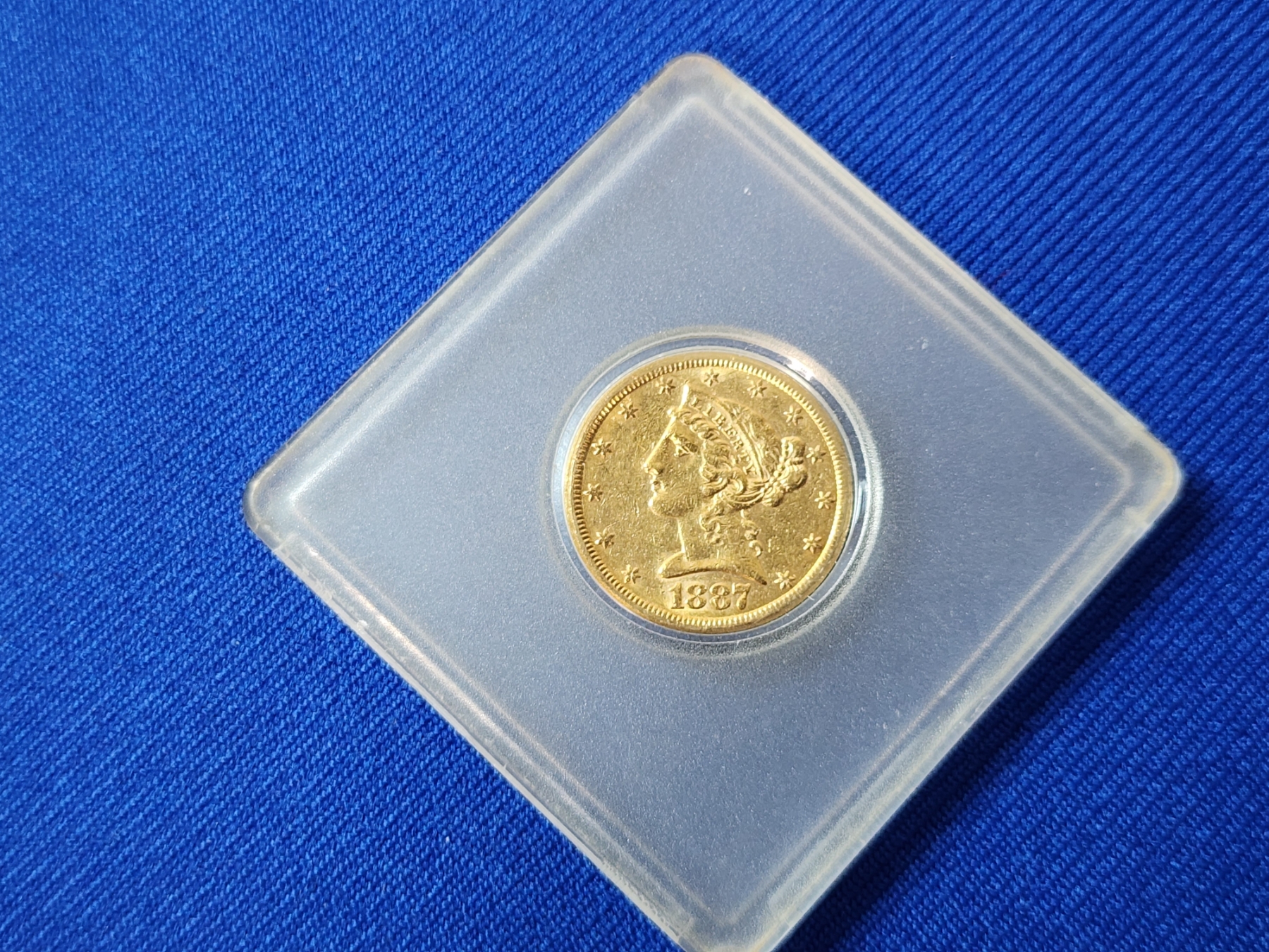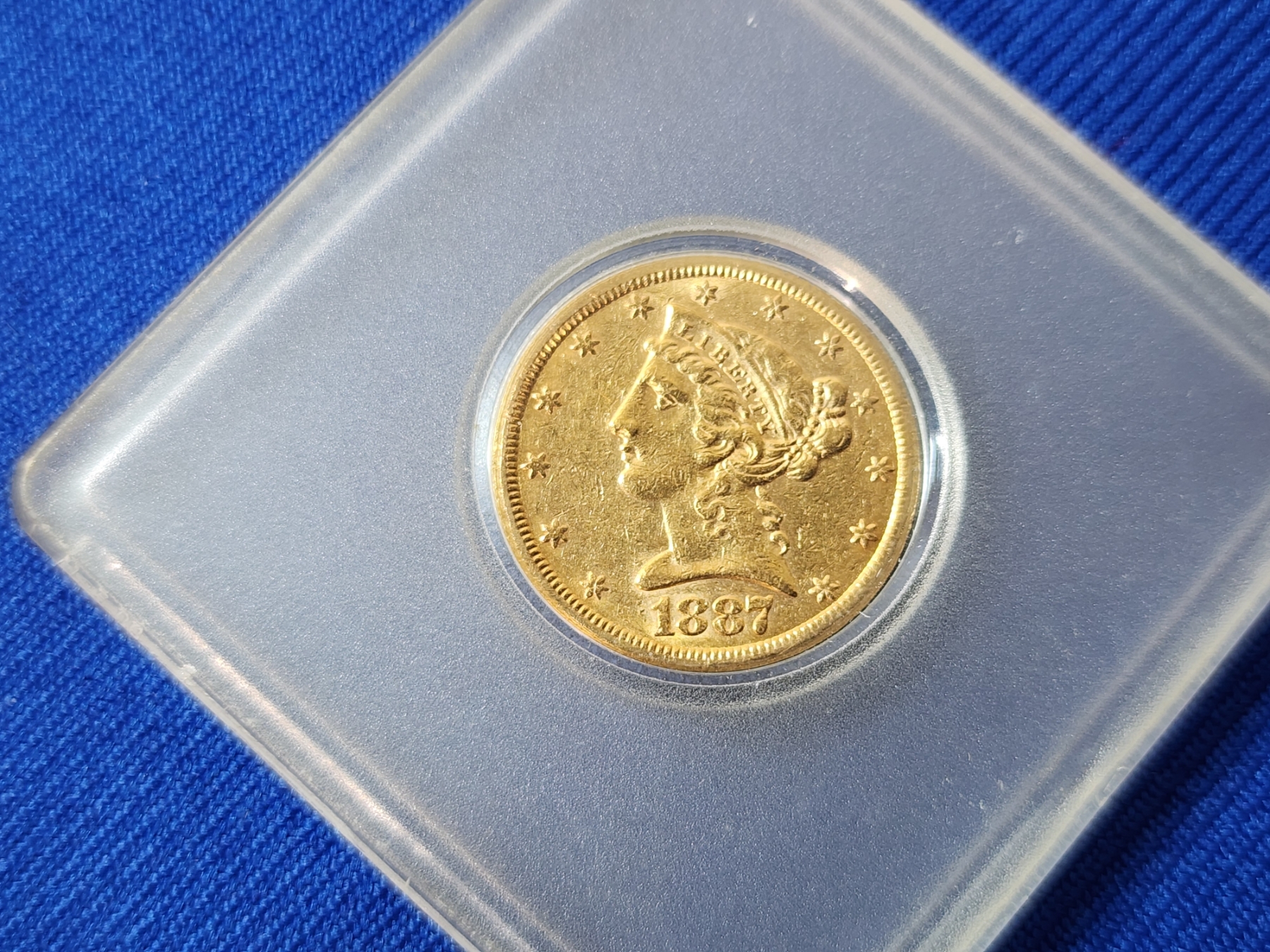 1887-S $5 Liberty Head GOLD HALF EAGLE Coin - 90% Gold - Excellent Condition in Holder