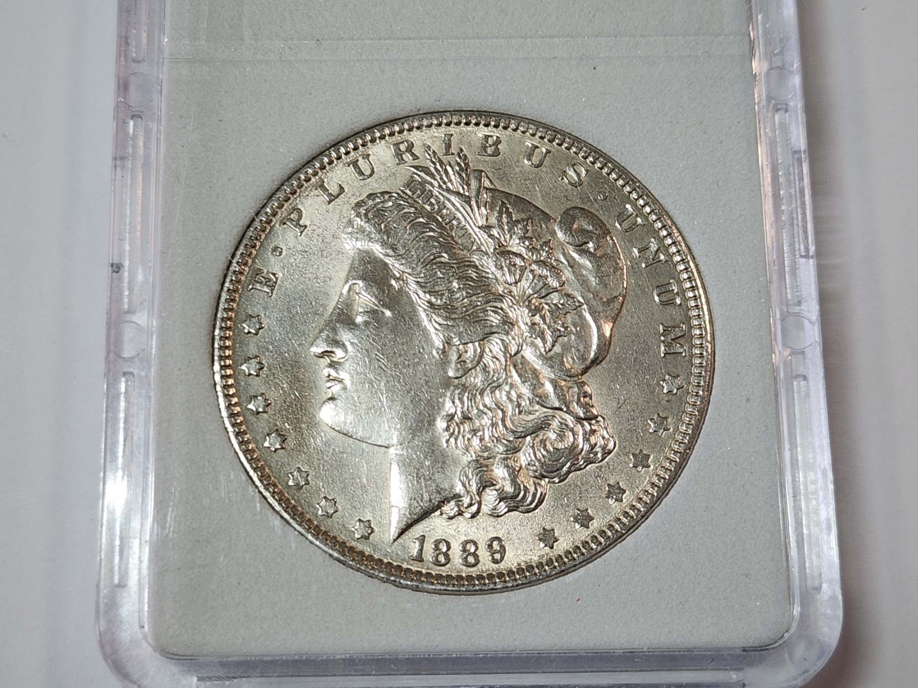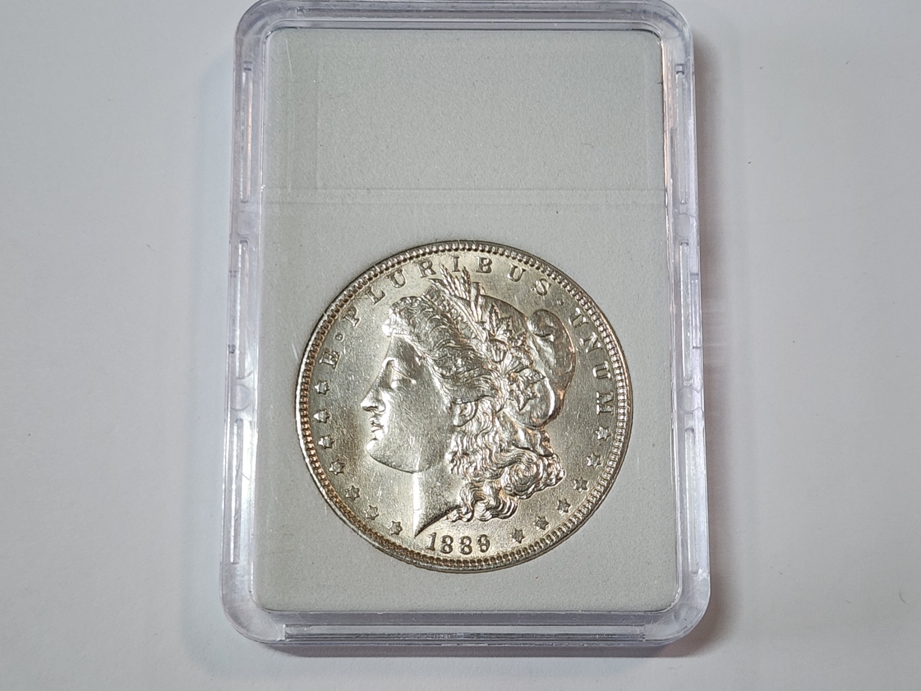 1889 90% Silver Morgan Dollar in Protective Slab Holder