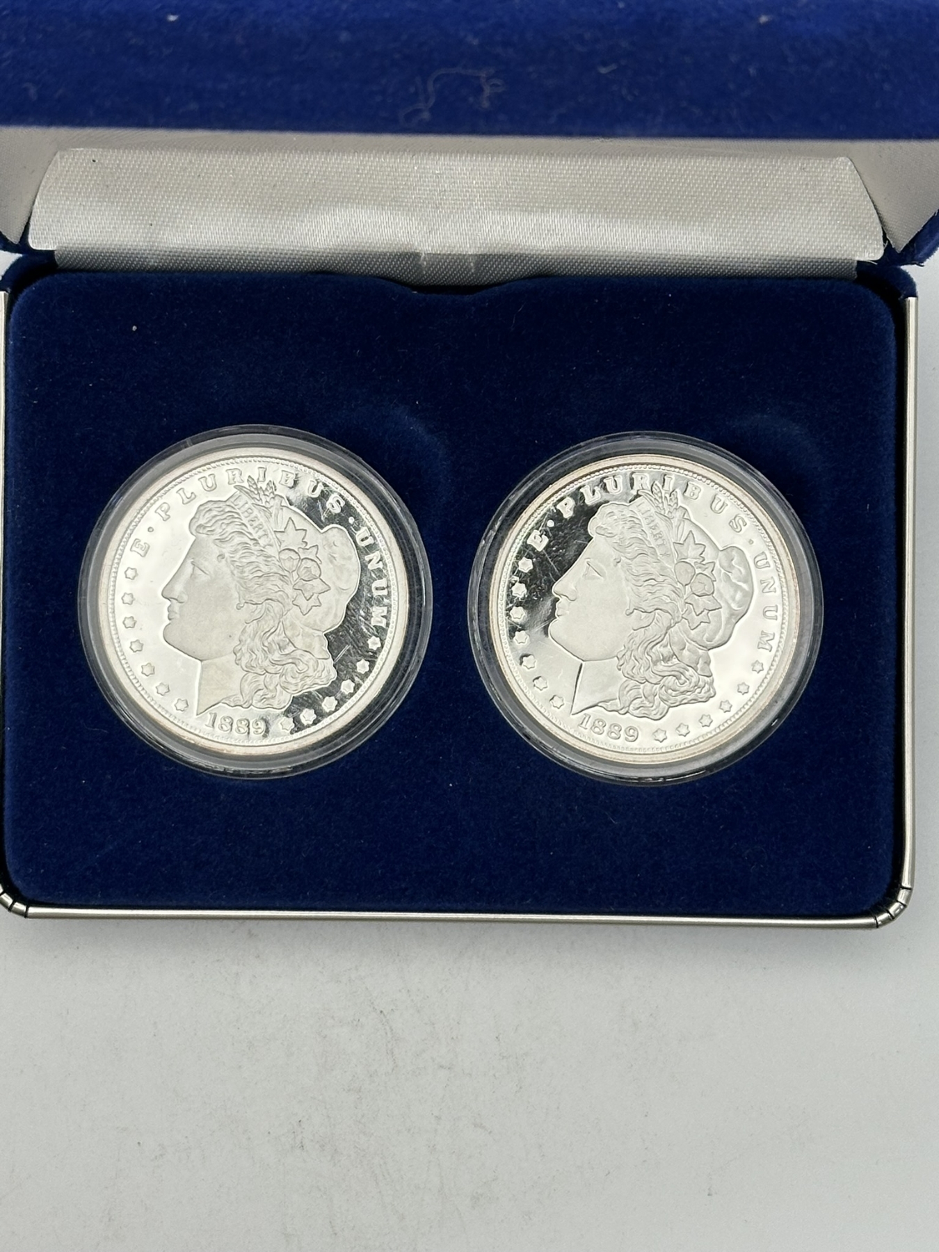 1889 Morgan Dollar Tribute Display - 1oz.999 Silver Round & 1 Clad