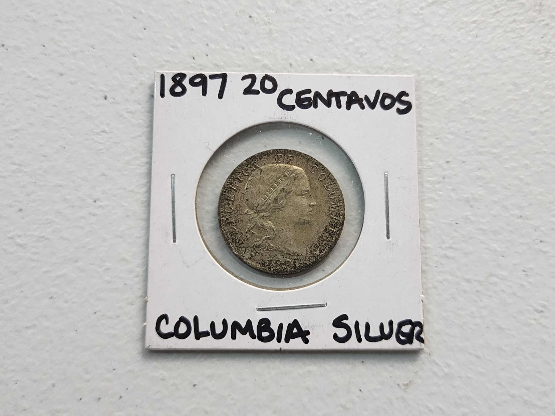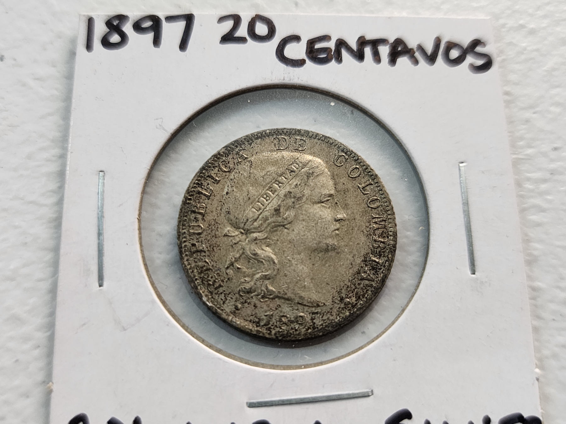 1897 Columbia 20 Centavos Silver Coin ASW: 0.1071oz