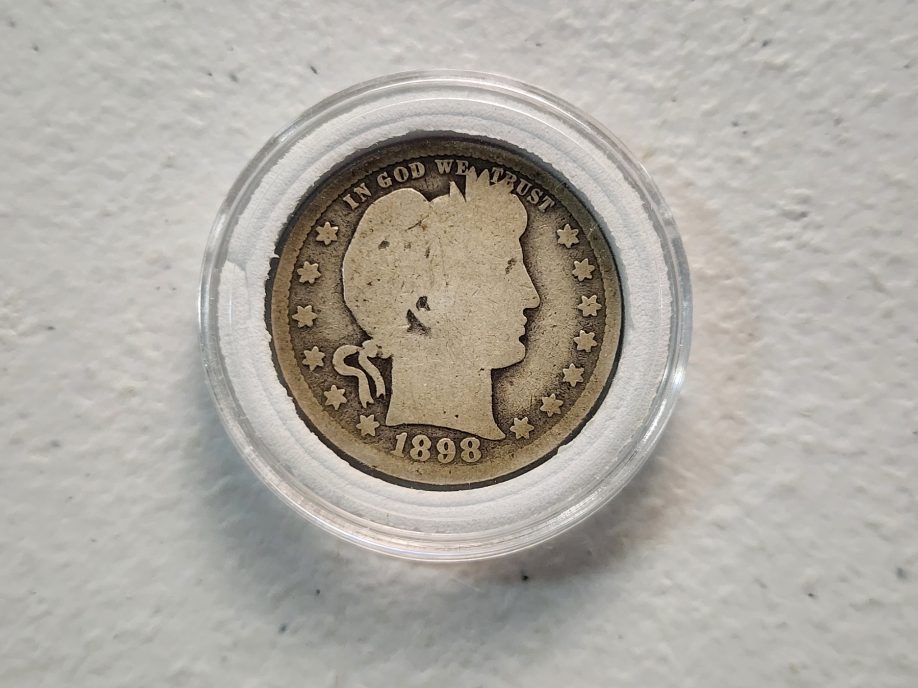 1898-O United States 90% Silver Barber Quarter in Capsule