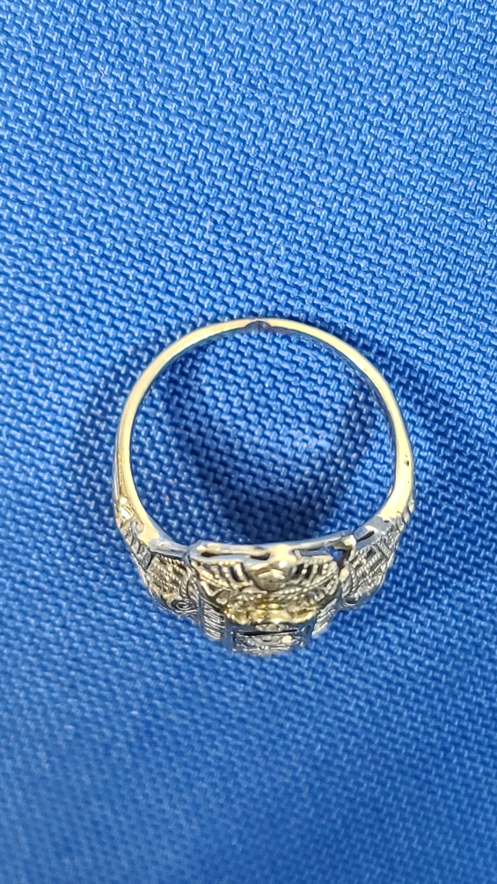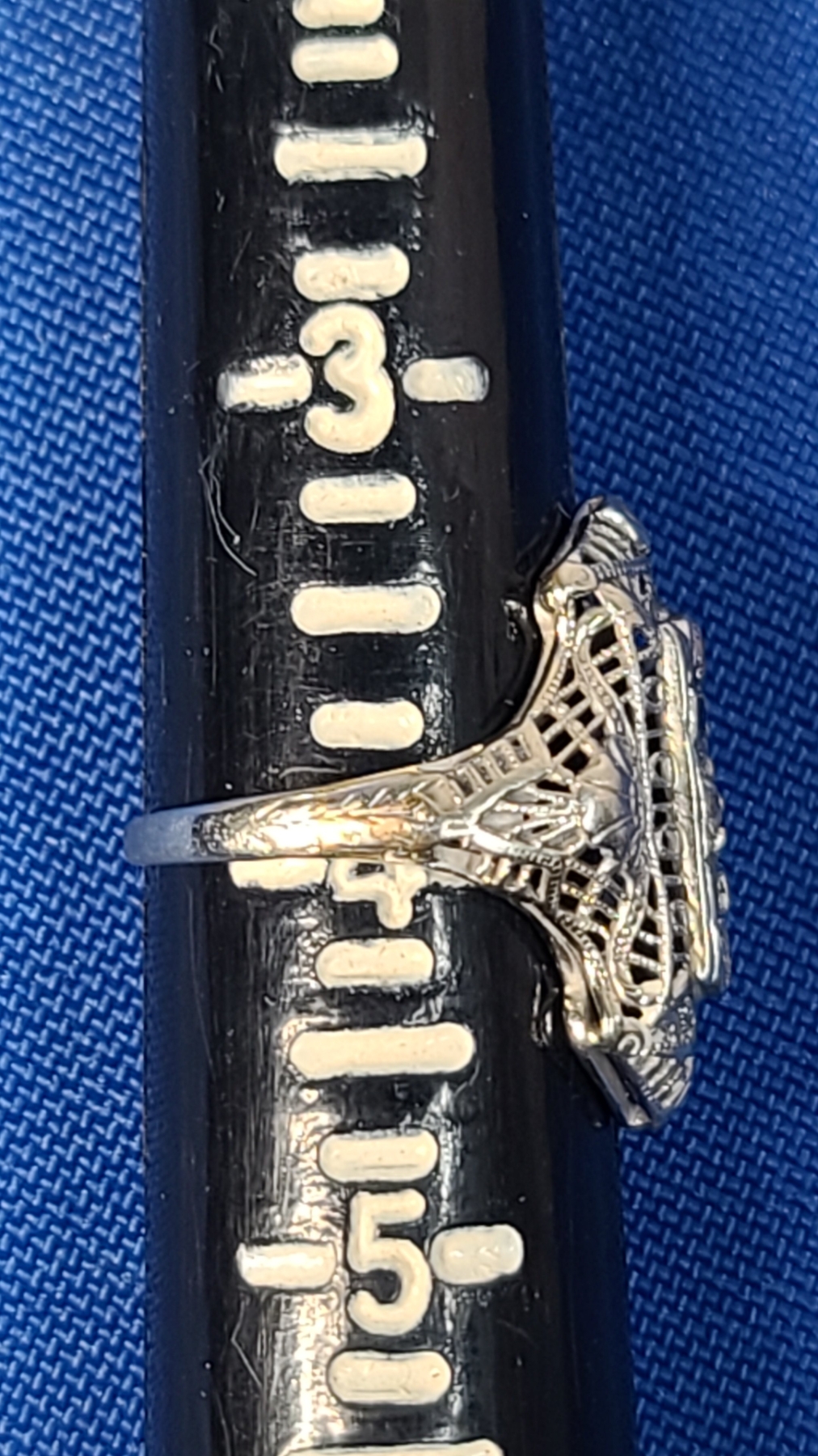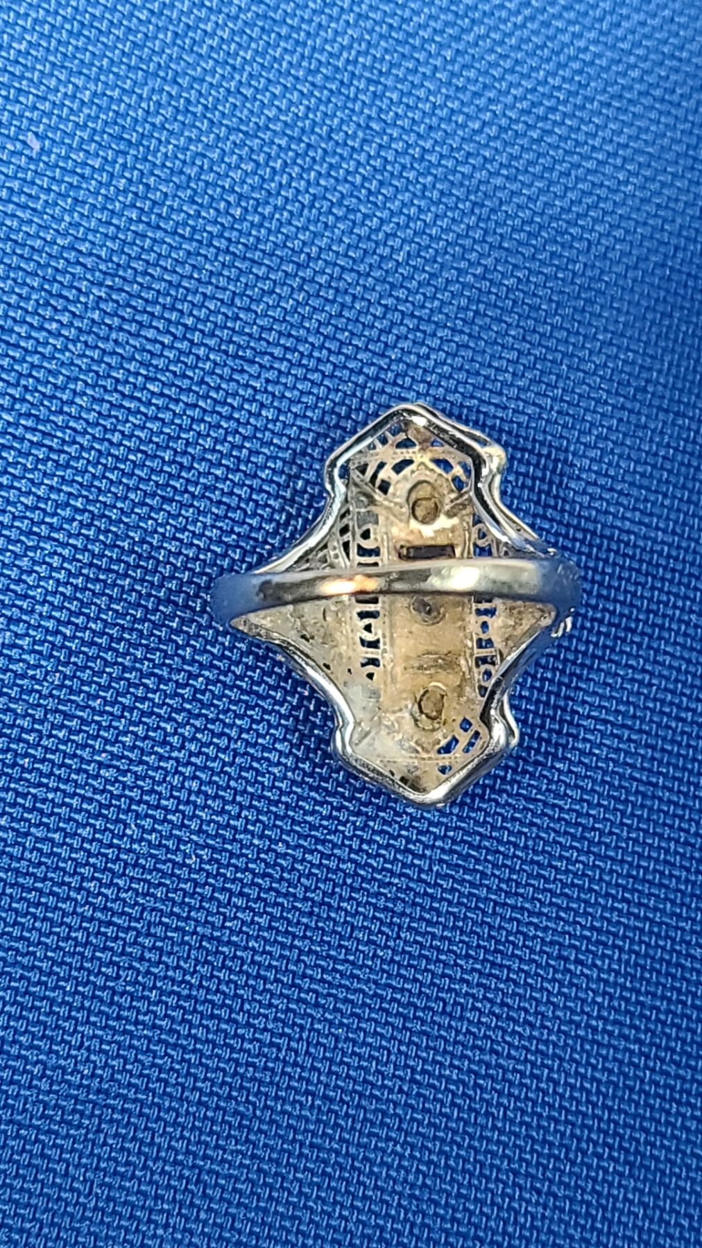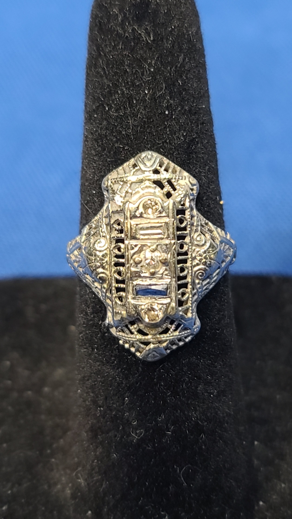18K White Gold Vintage Art Deco Filigree Ring With Some Diamonds - Size 4 - Weight: 2.5g