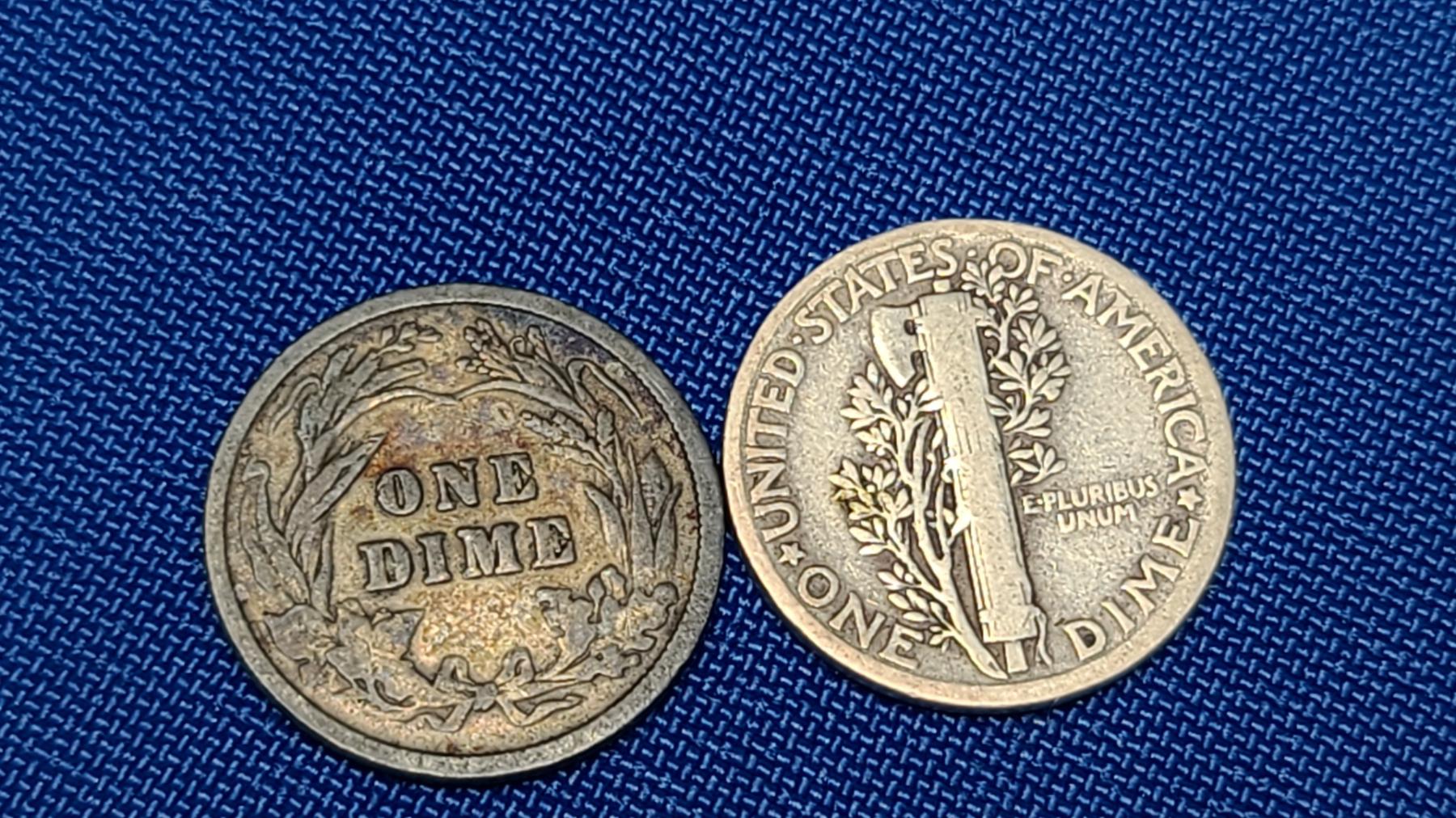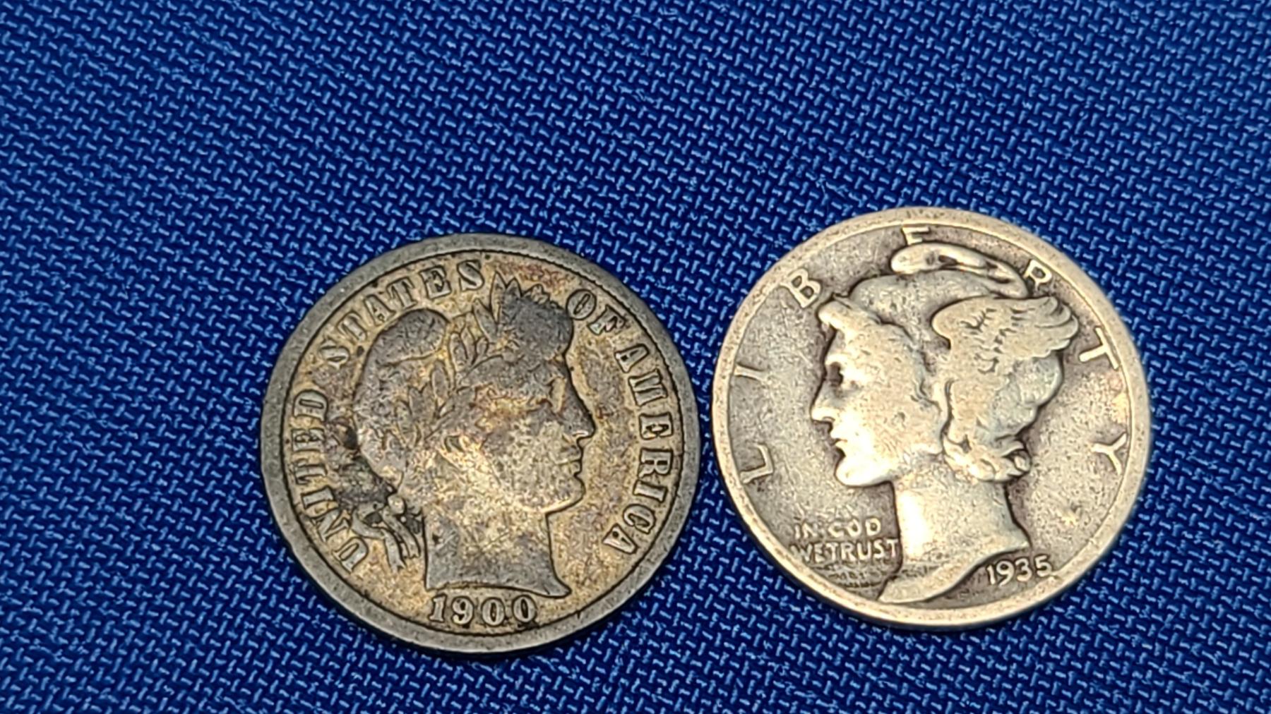 1900 90% Silver Barber Dime & 1935 90% Silver Mercury Dime - Face Value: $0.20