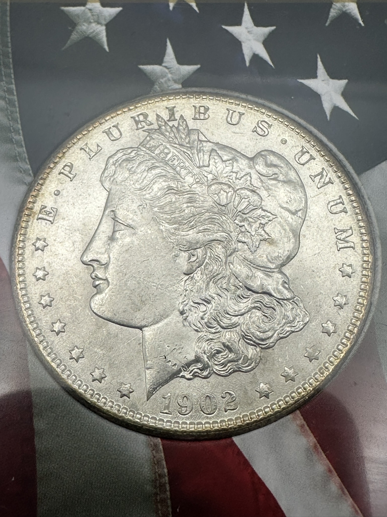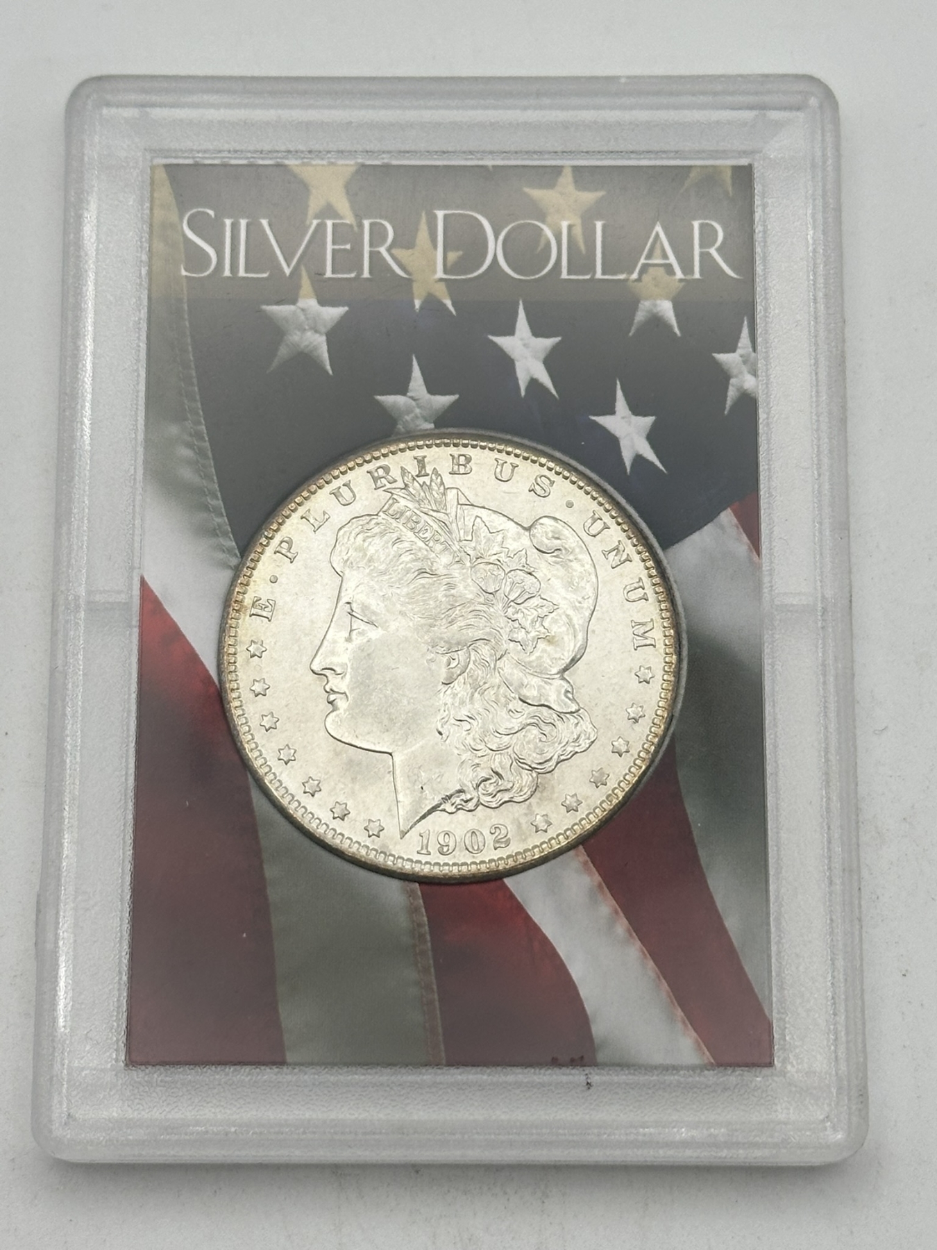 1902-O Morgan Silver Dollar in American Flag Plastic Case