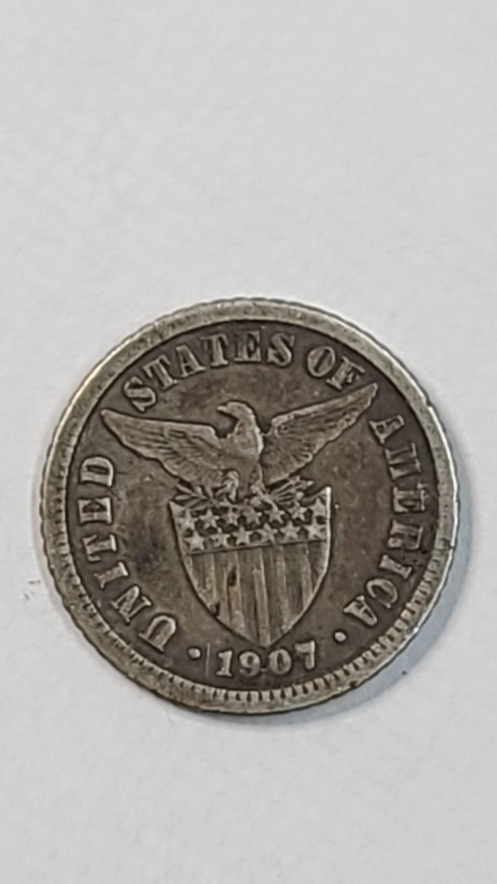 1907 Philippines Ten Centavos 75% Silver Coin