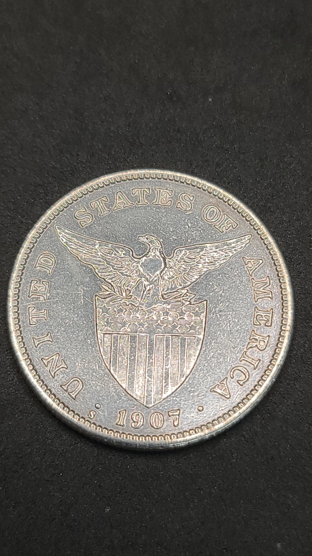 1907 S Philippines 80% Silver 1 Peso Under U.S. Administration - ASW: 0.5144oz