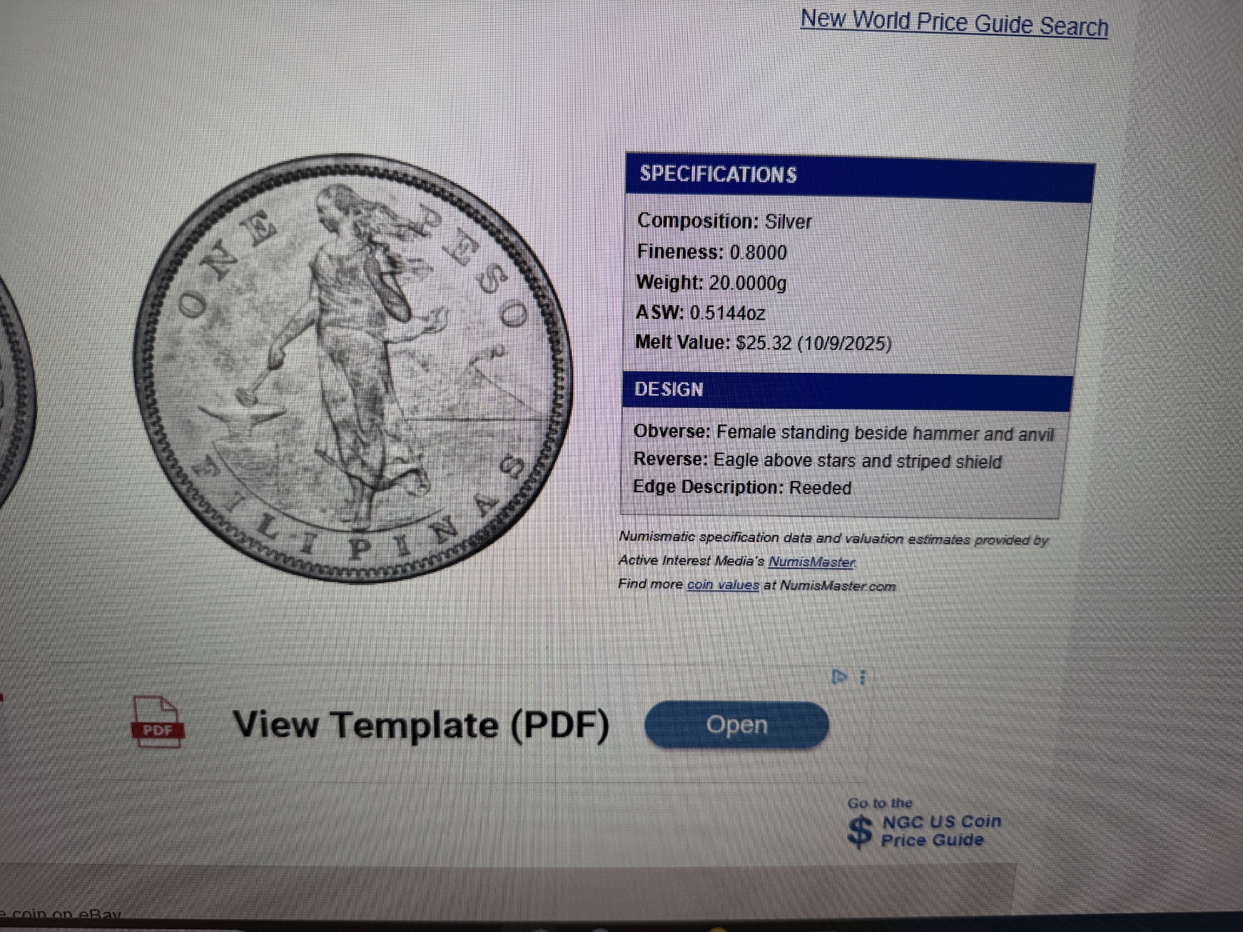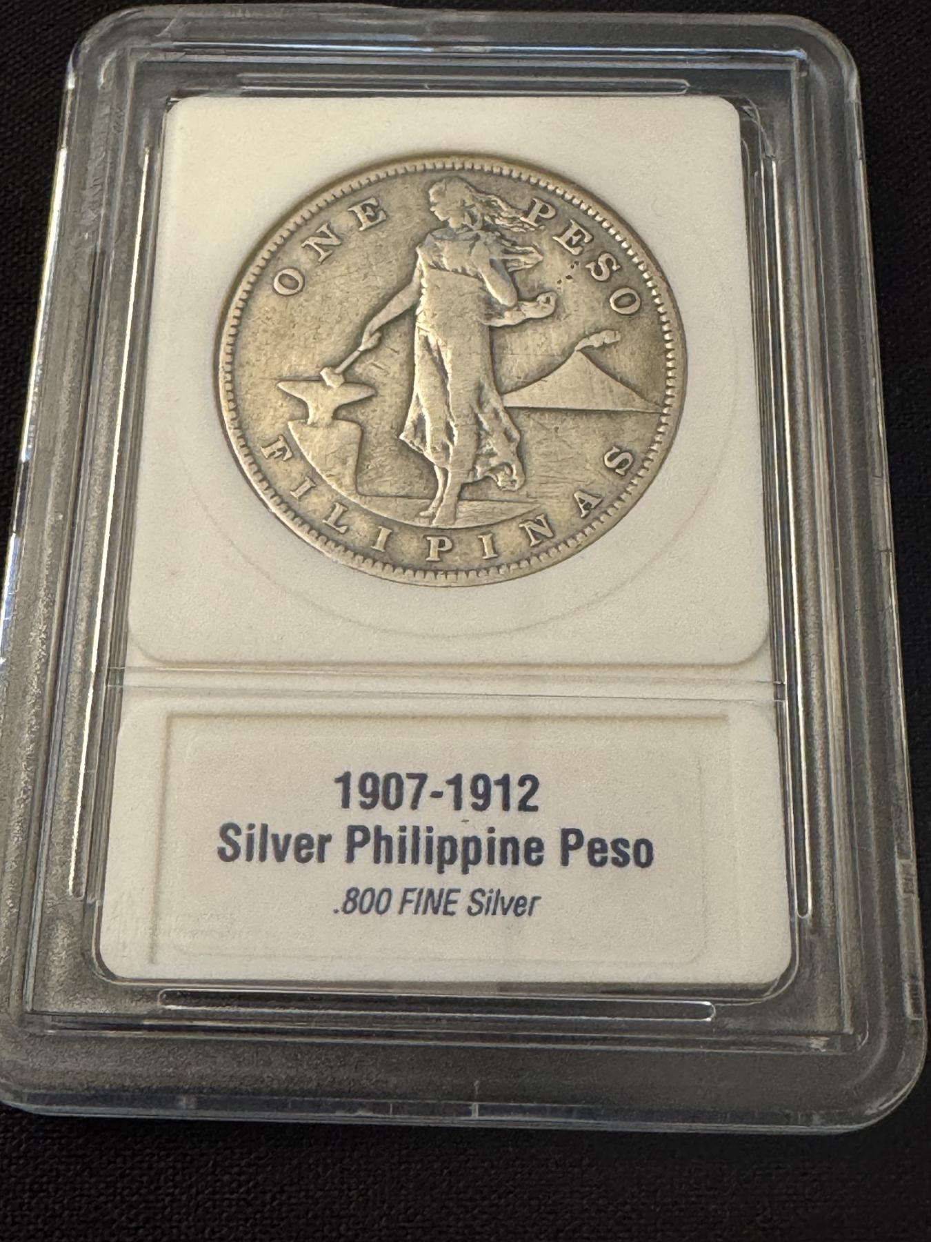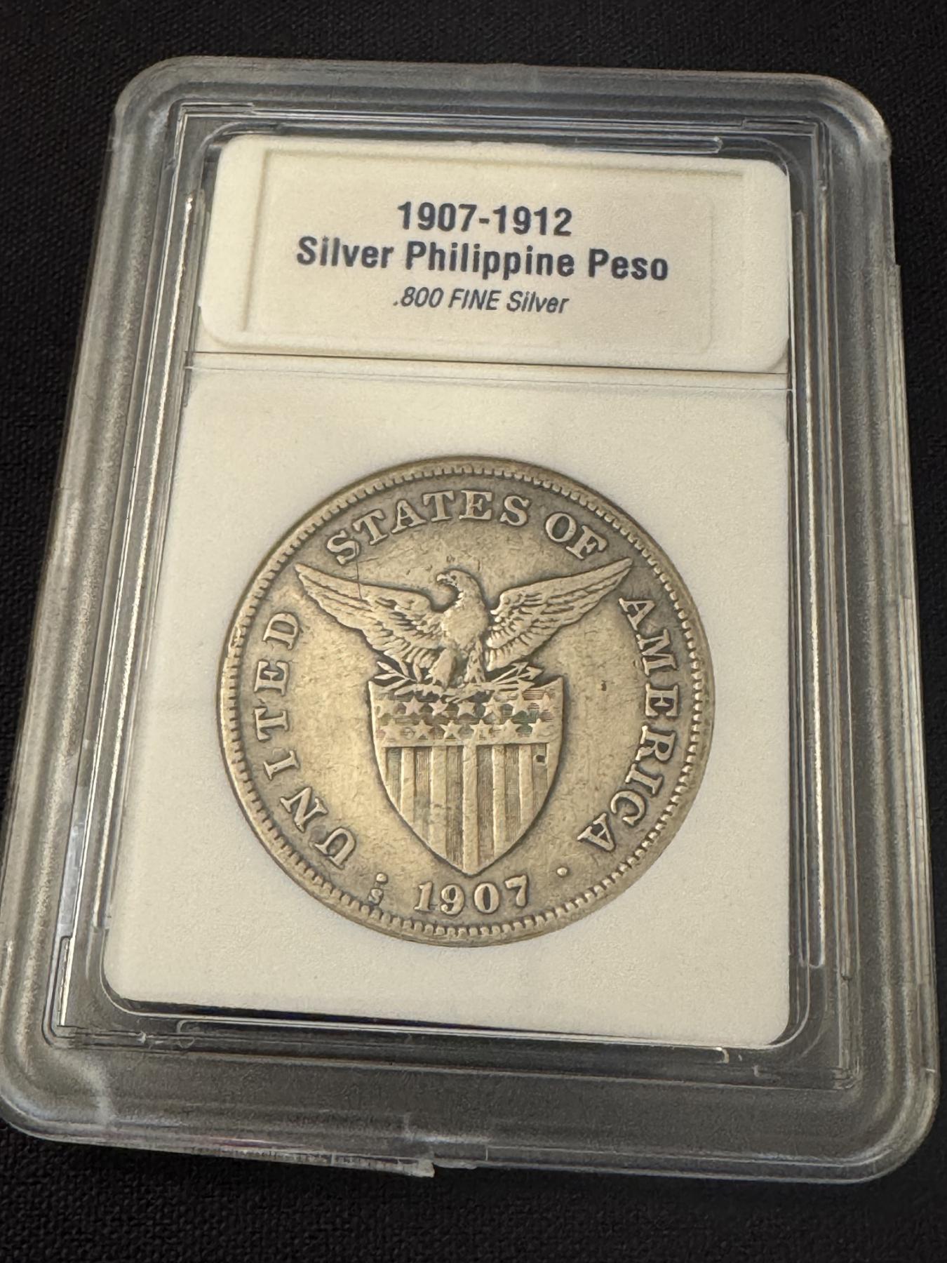 1907 Silver Philippine Silver Peso Coin - .5144 Troy Silver Ounce