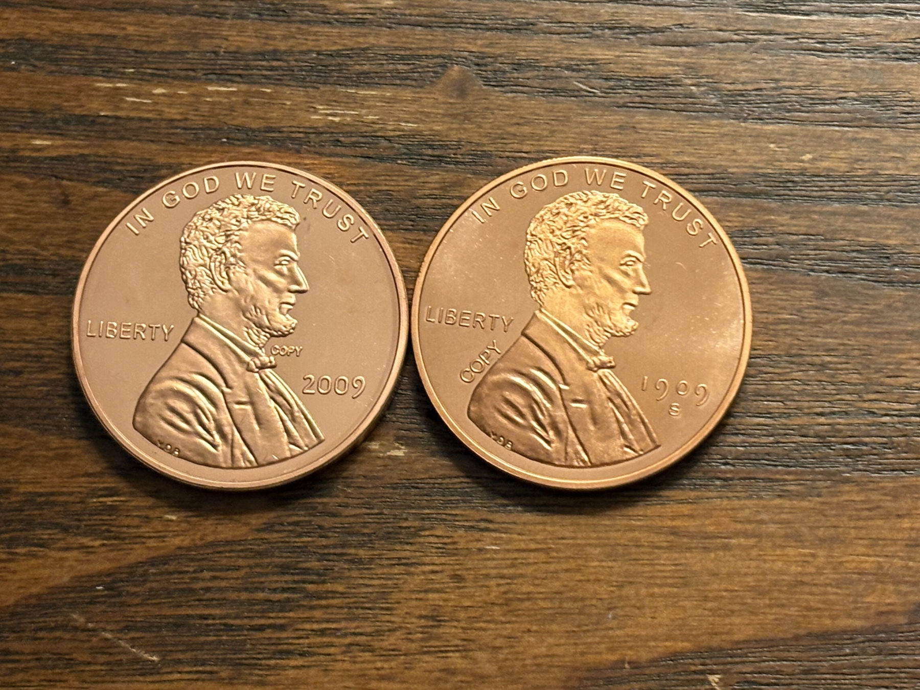 1909-S & 2009 Copies Lincoln Bicentennial One Cent Pieces - FV $0.02 - One Encapsulated