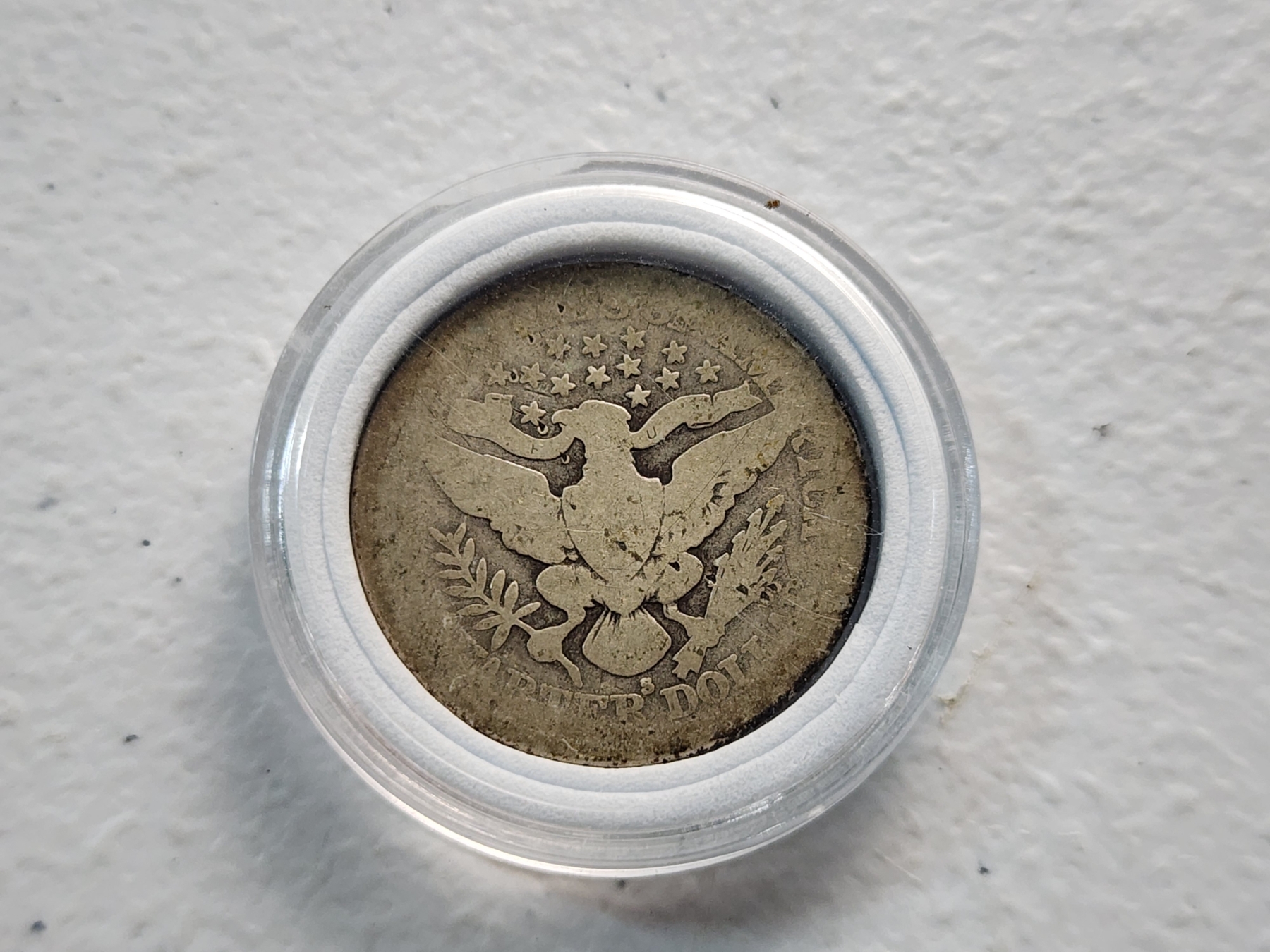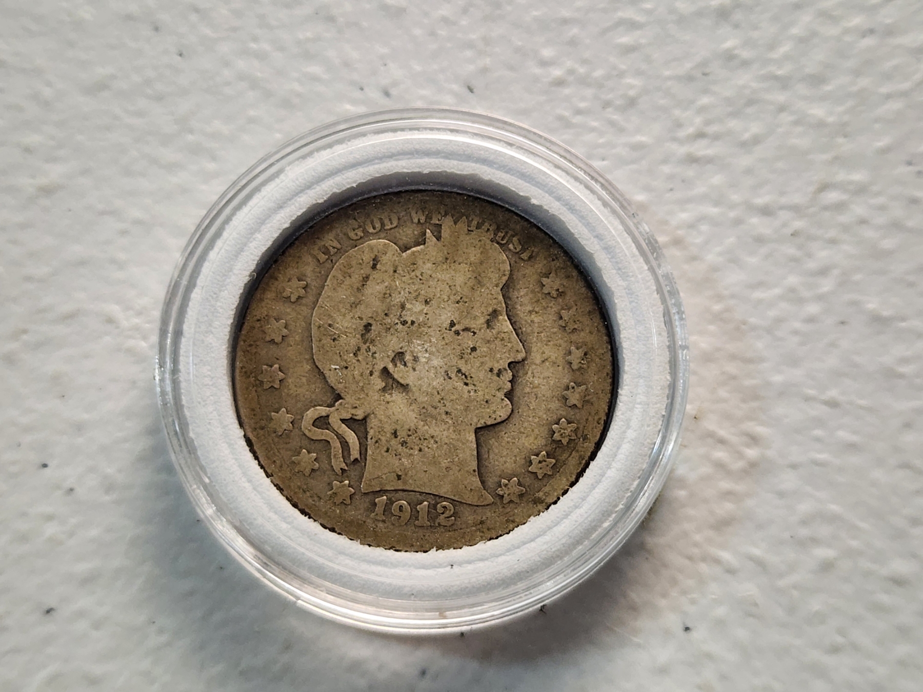 1912-S United States 90% Silver Barber Quarter in Capsule