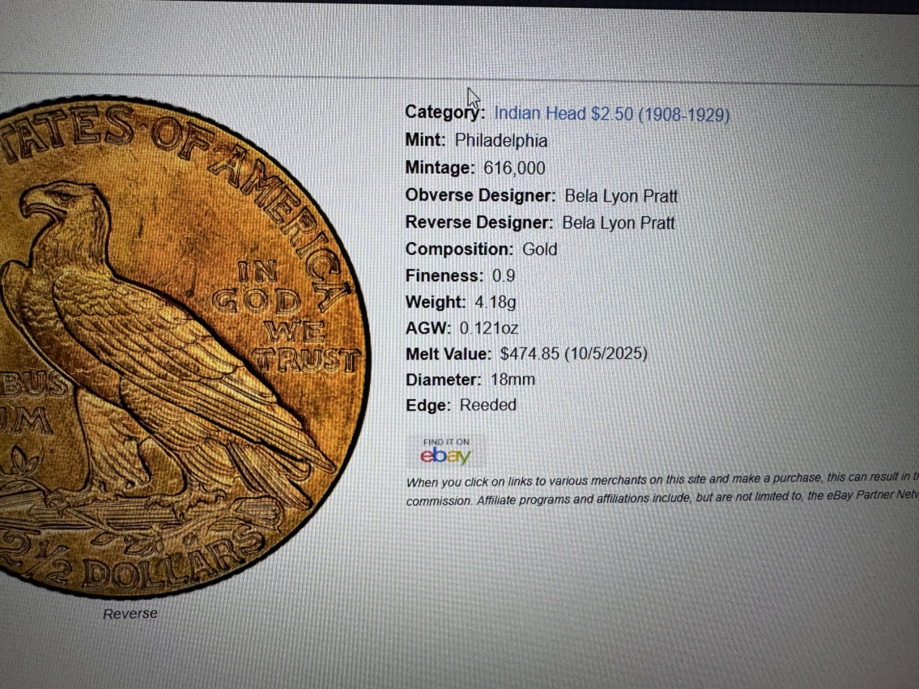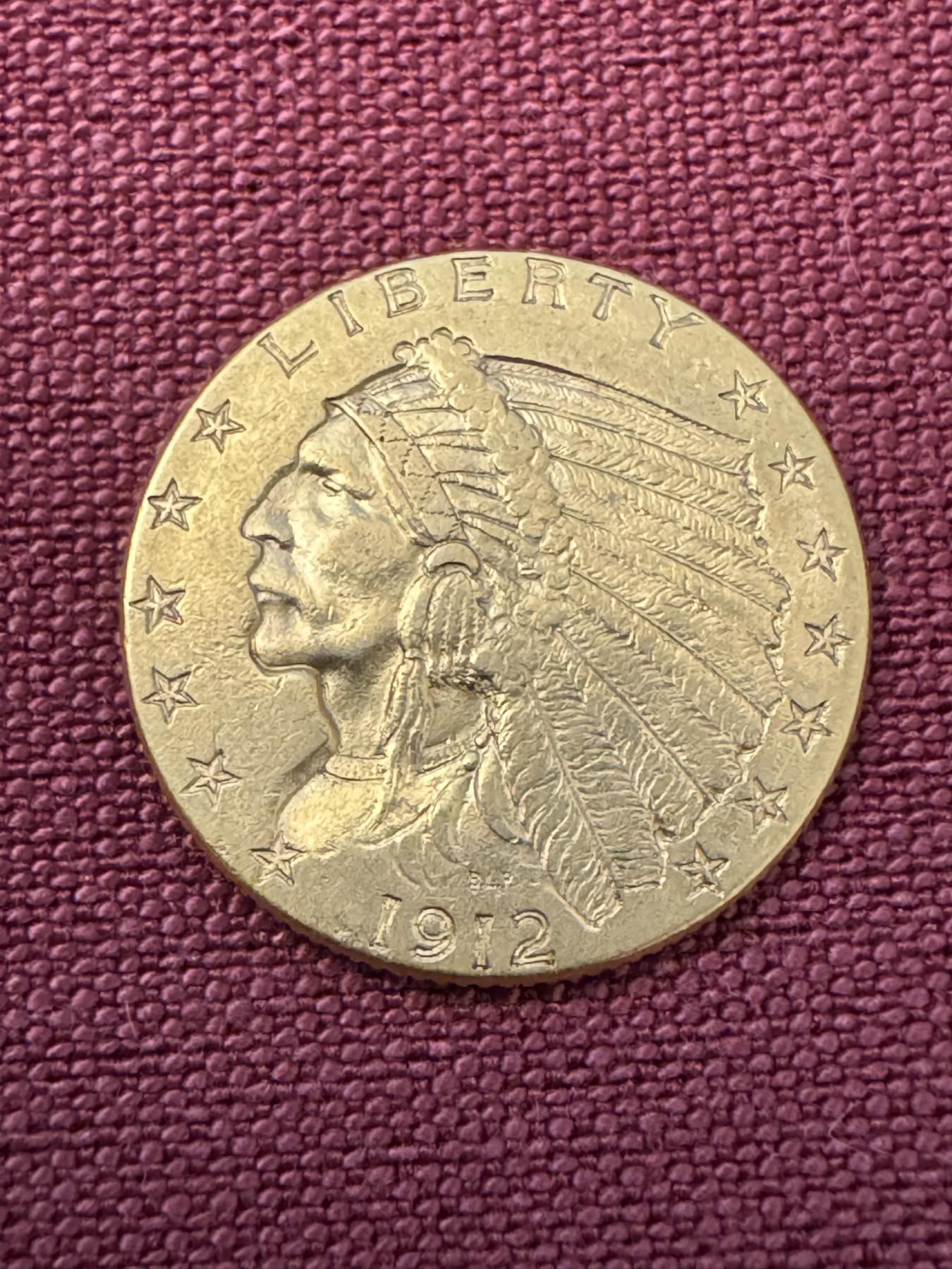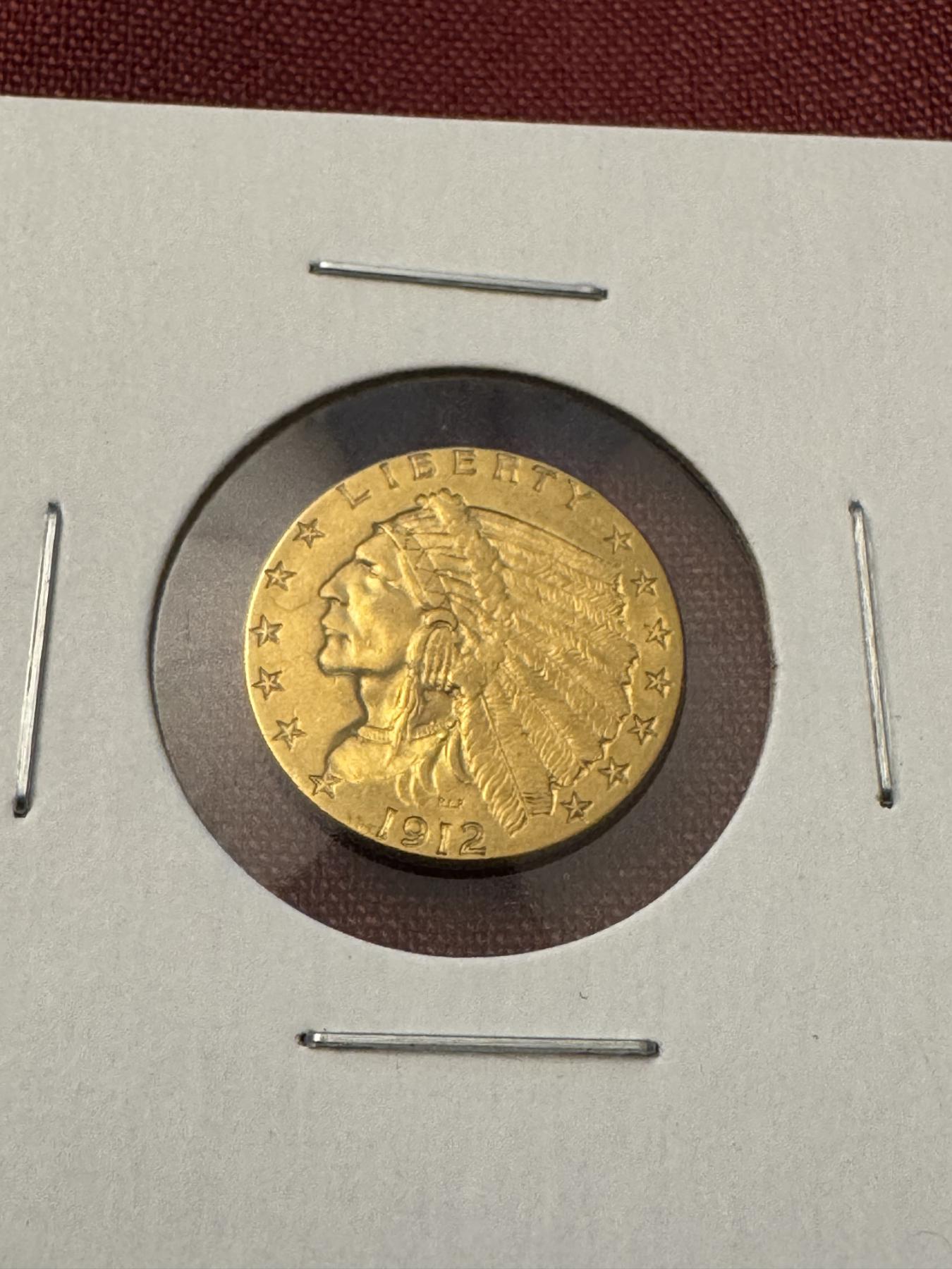 1912 United States Indian Head $2.50 Gold Coin - Low Mintage - Higher Grade Coin - See Video of This Coin At - https://www.youtube.com/shorts/TO3W7EXbvK0