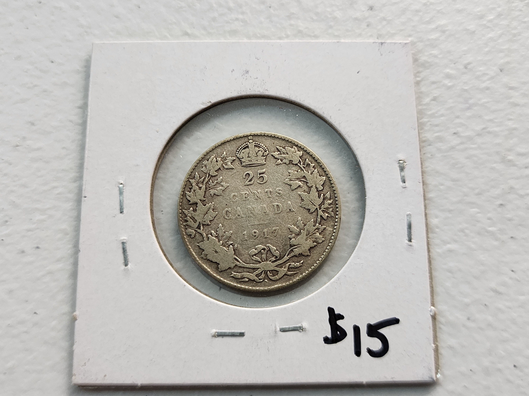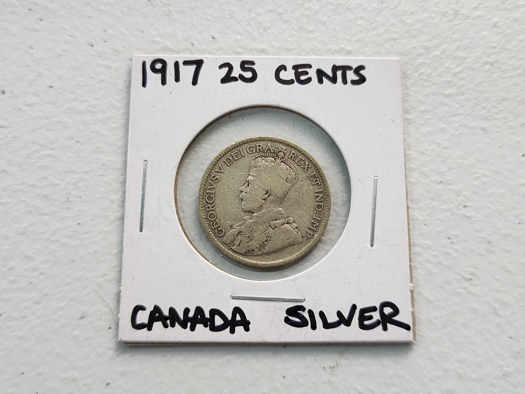 1917 Canada 92.5% Silver 25 Cent Coin ASW: 0.1734oz
