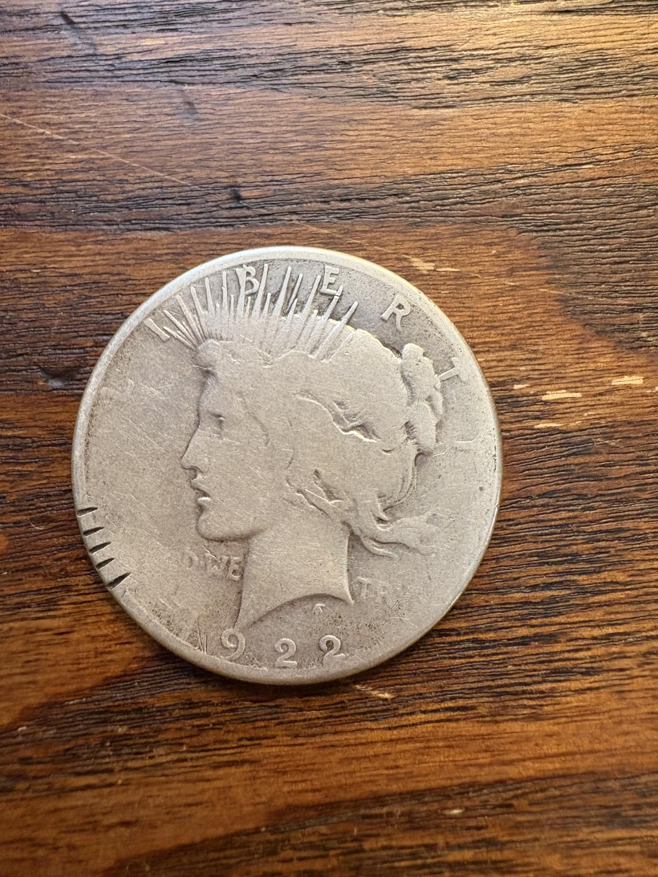1922-S Silver Peace Dollar - 90% Silver - FV $1.00 - Mintage 17,475,000