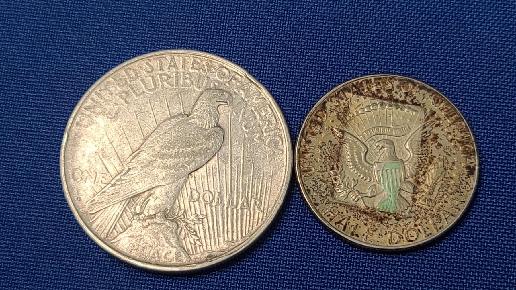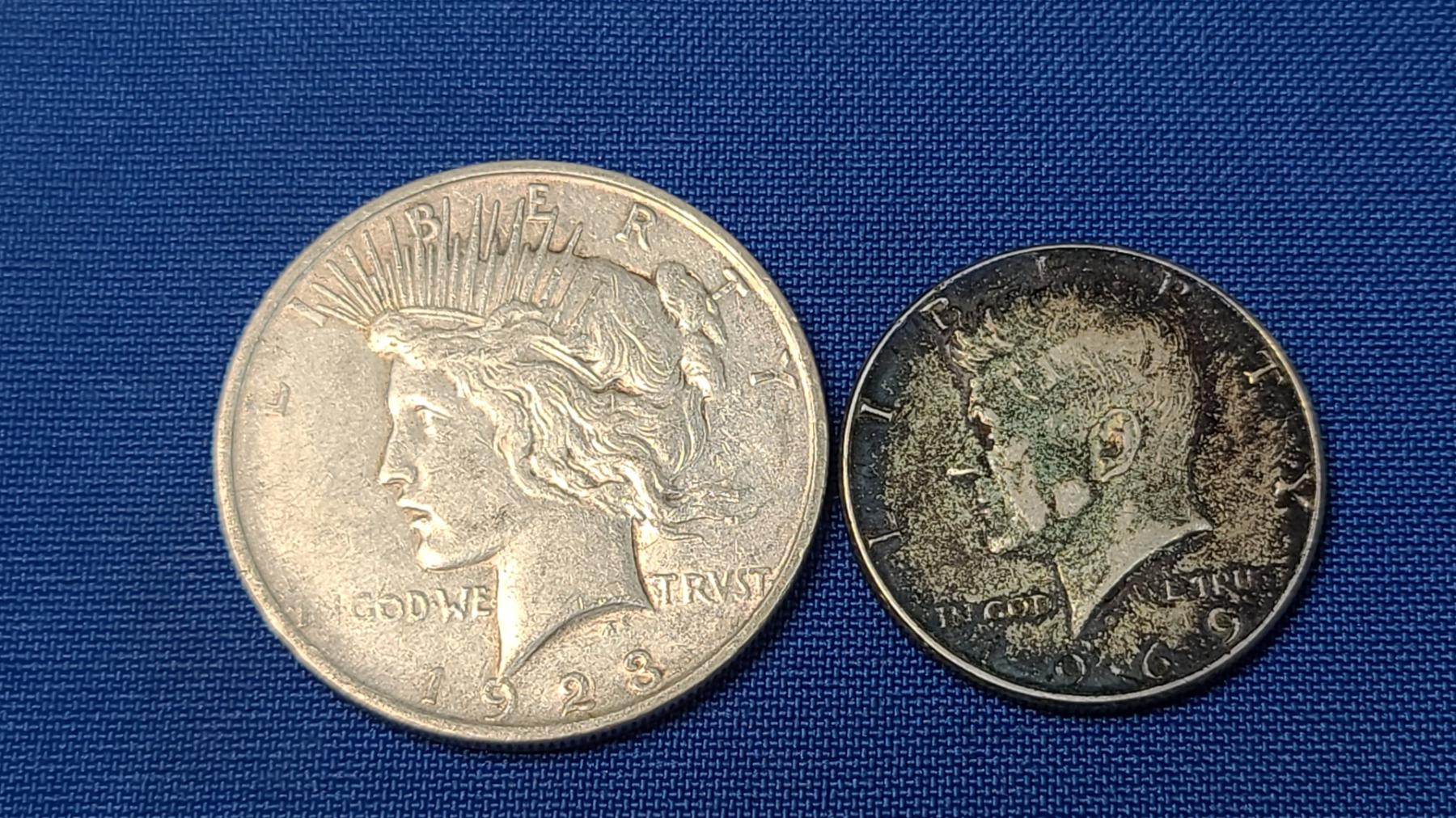 1923-D 90% Silver Peace Dollar & 1969 40% Silver Kennedy Half Dollar