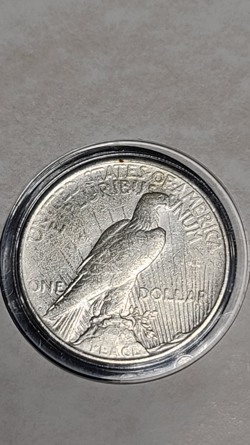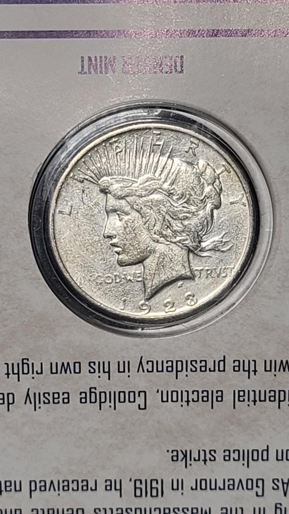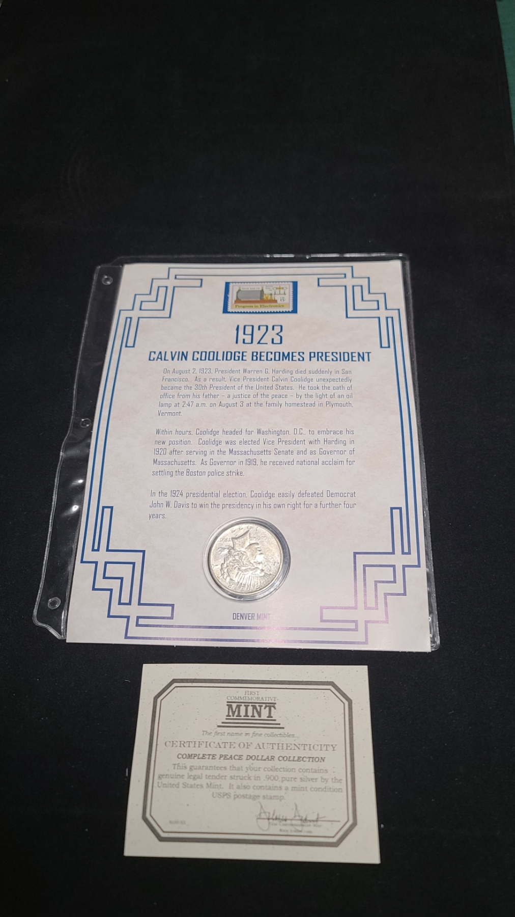 1923-D Silver Peace Dollar in First Commemorative Mint Display With Stamp