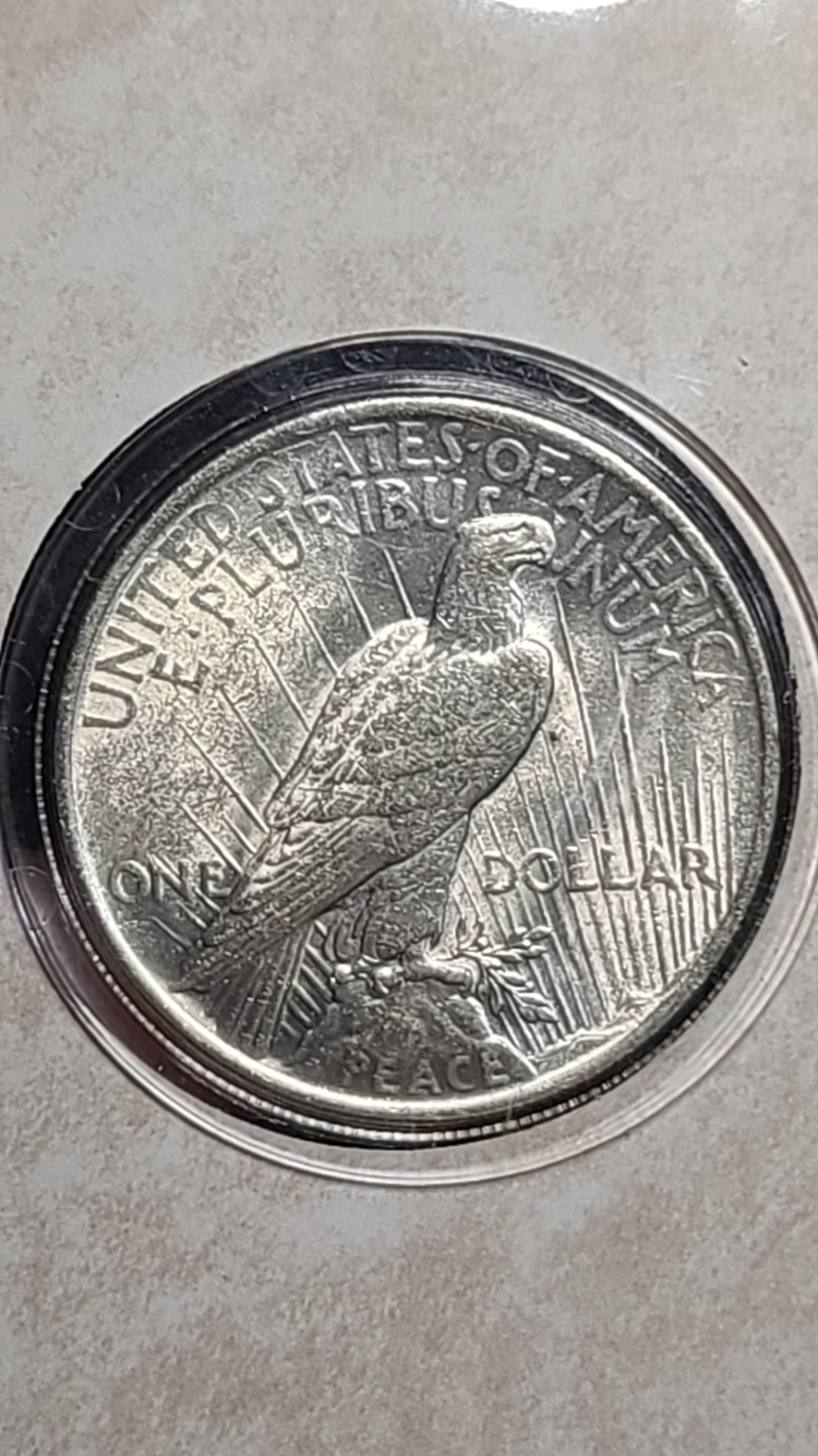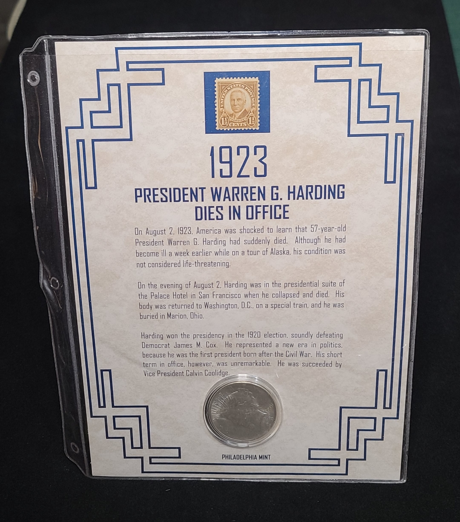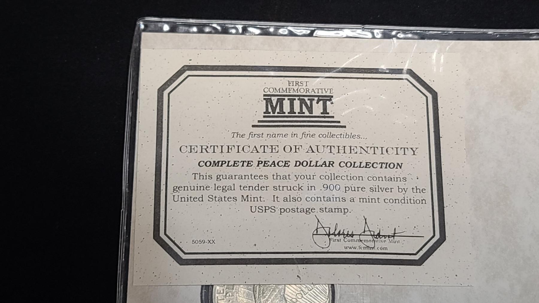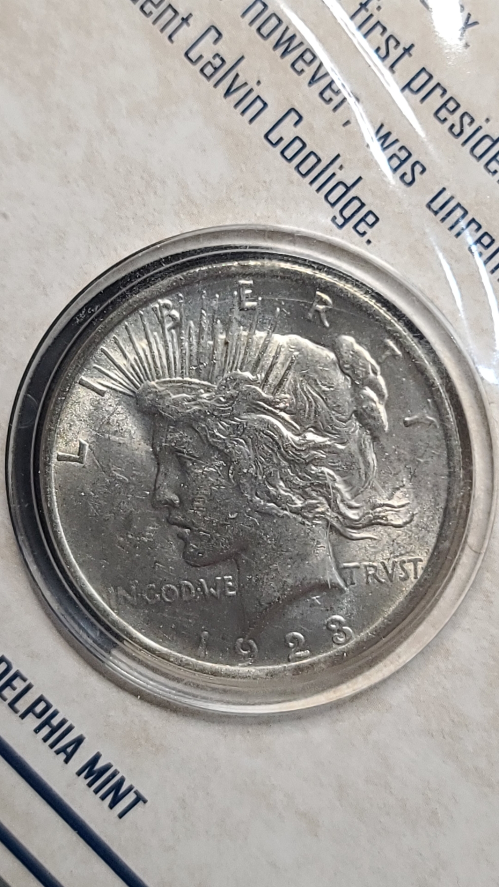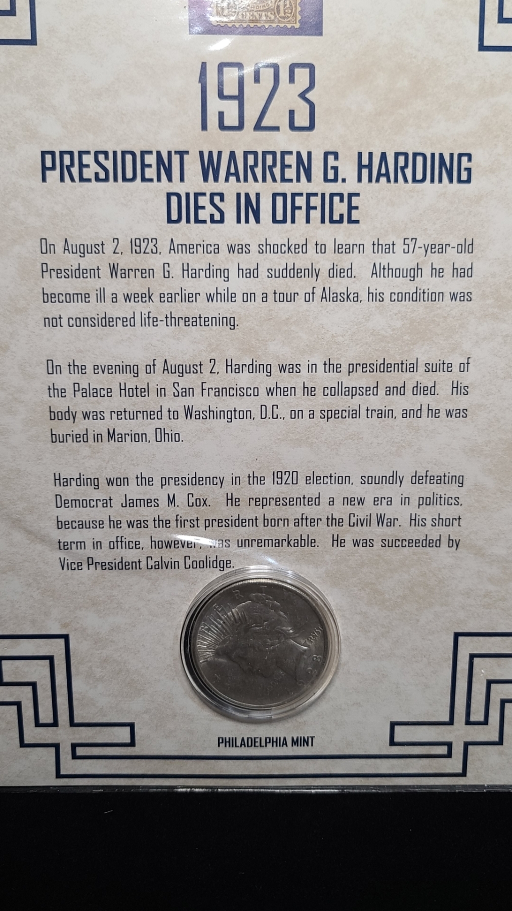 1923-P Silver Peace Dollar in First Commemorative Mint Display With Stamp
