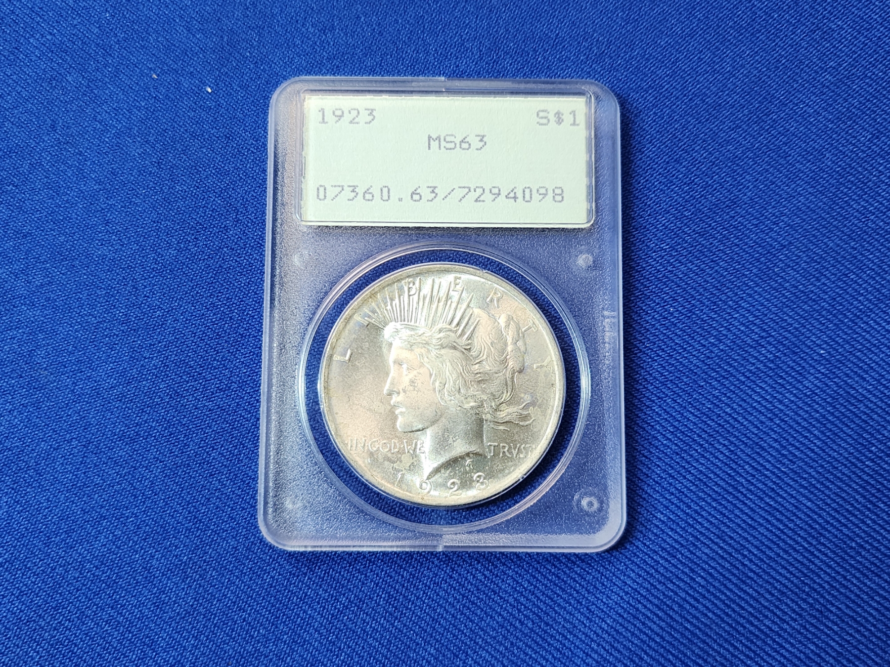 1923 Silver Peace Dollar Graded PCGS MS 63
