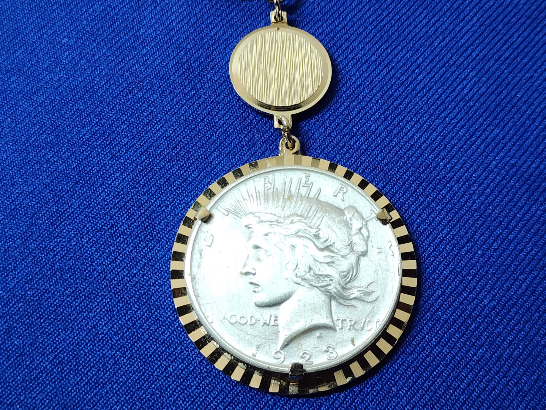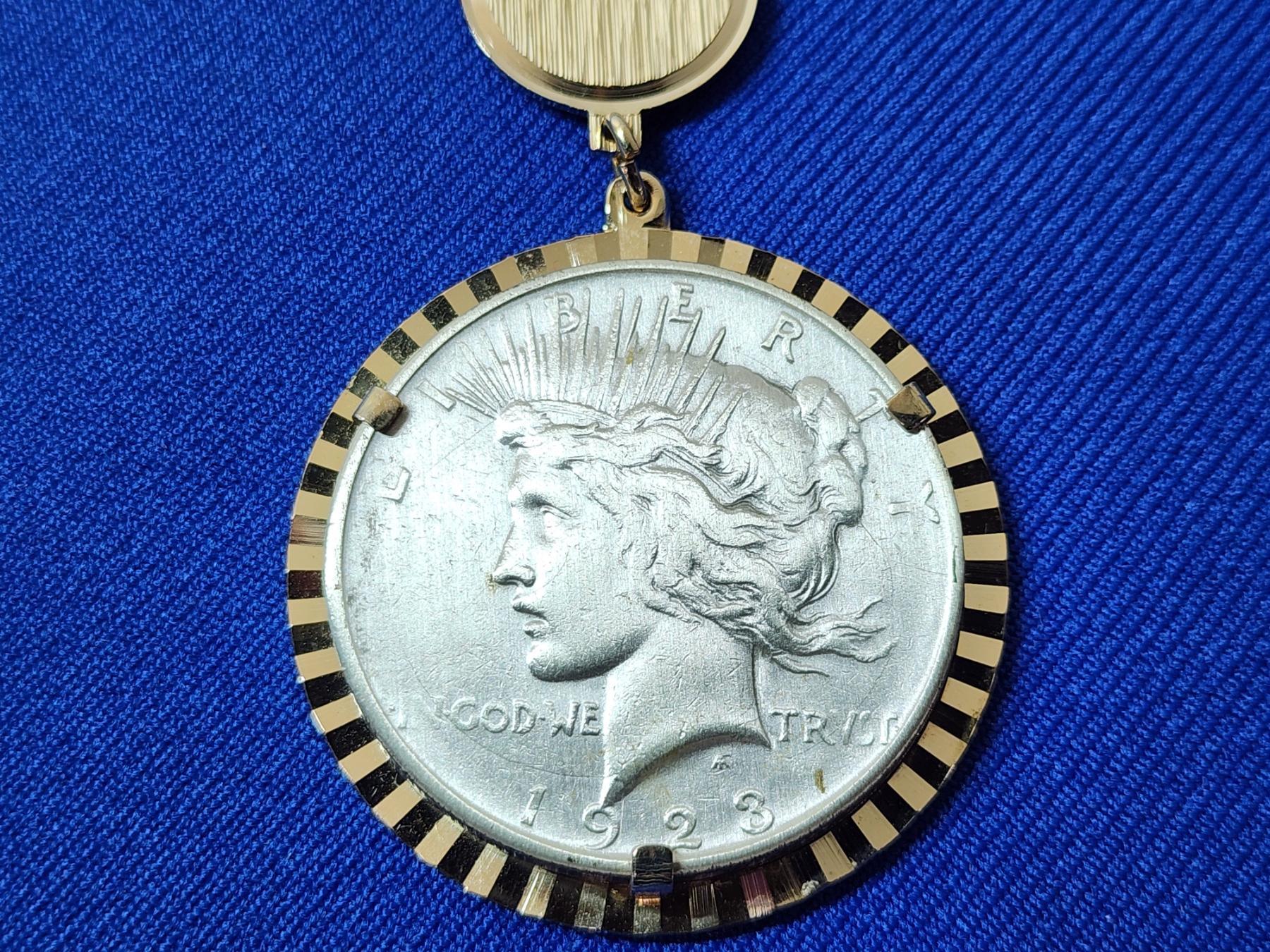1923 Silver Peace Dollar in Gold-Tone Keychain