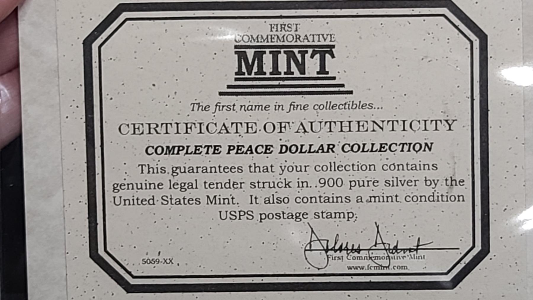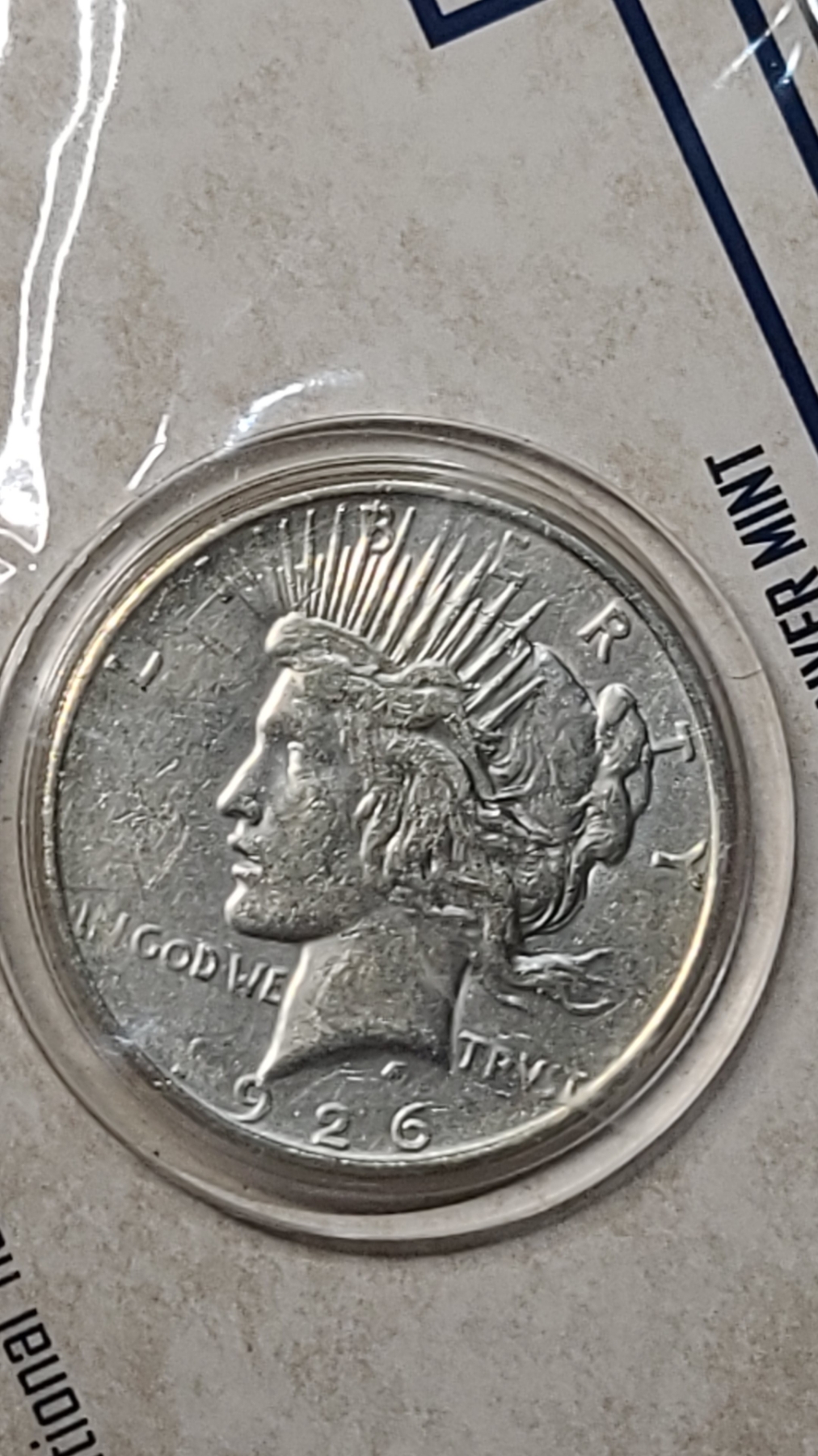 1926-D Silver Peace Dollar in First Commemorative Mint Display With Stamp