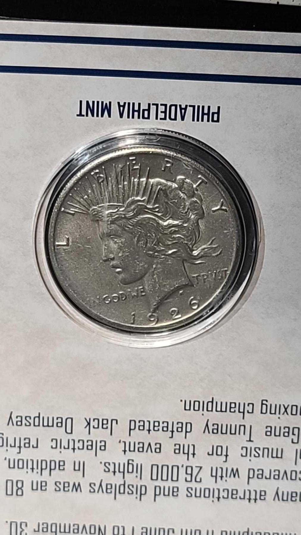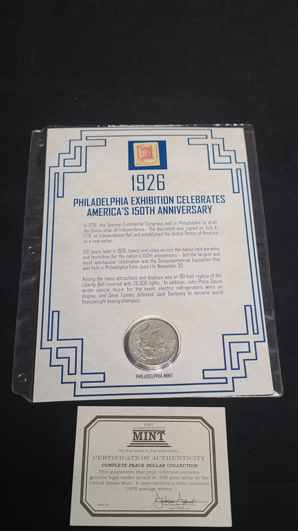 1926-P Silver Peace Dollar in First Commemorative Mint Display With Stamp