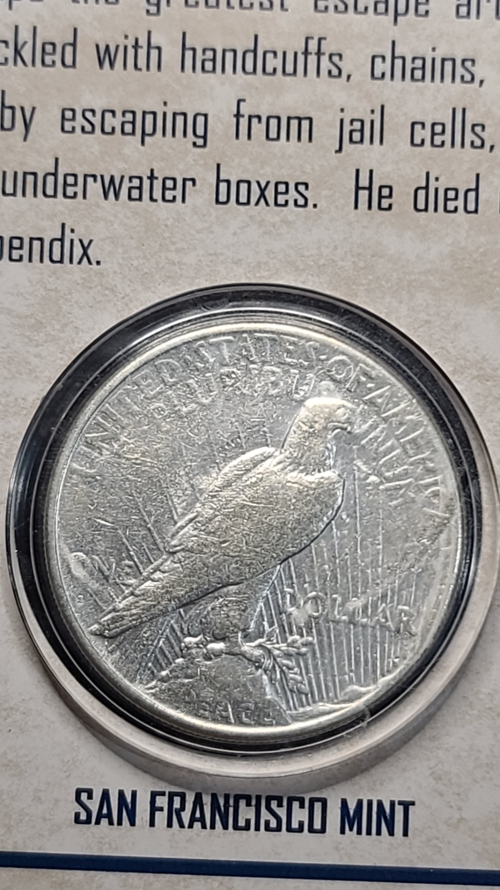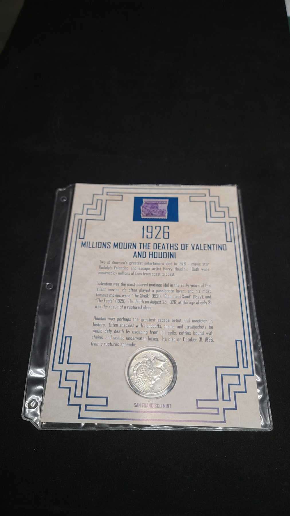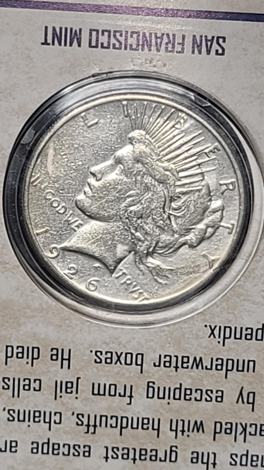 1926-S Silver Peace Dollar in First Commemorative Mint Display With Stamp