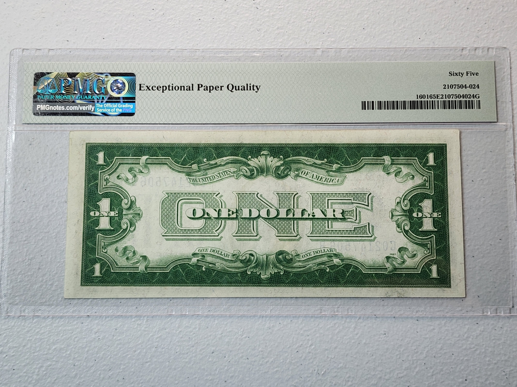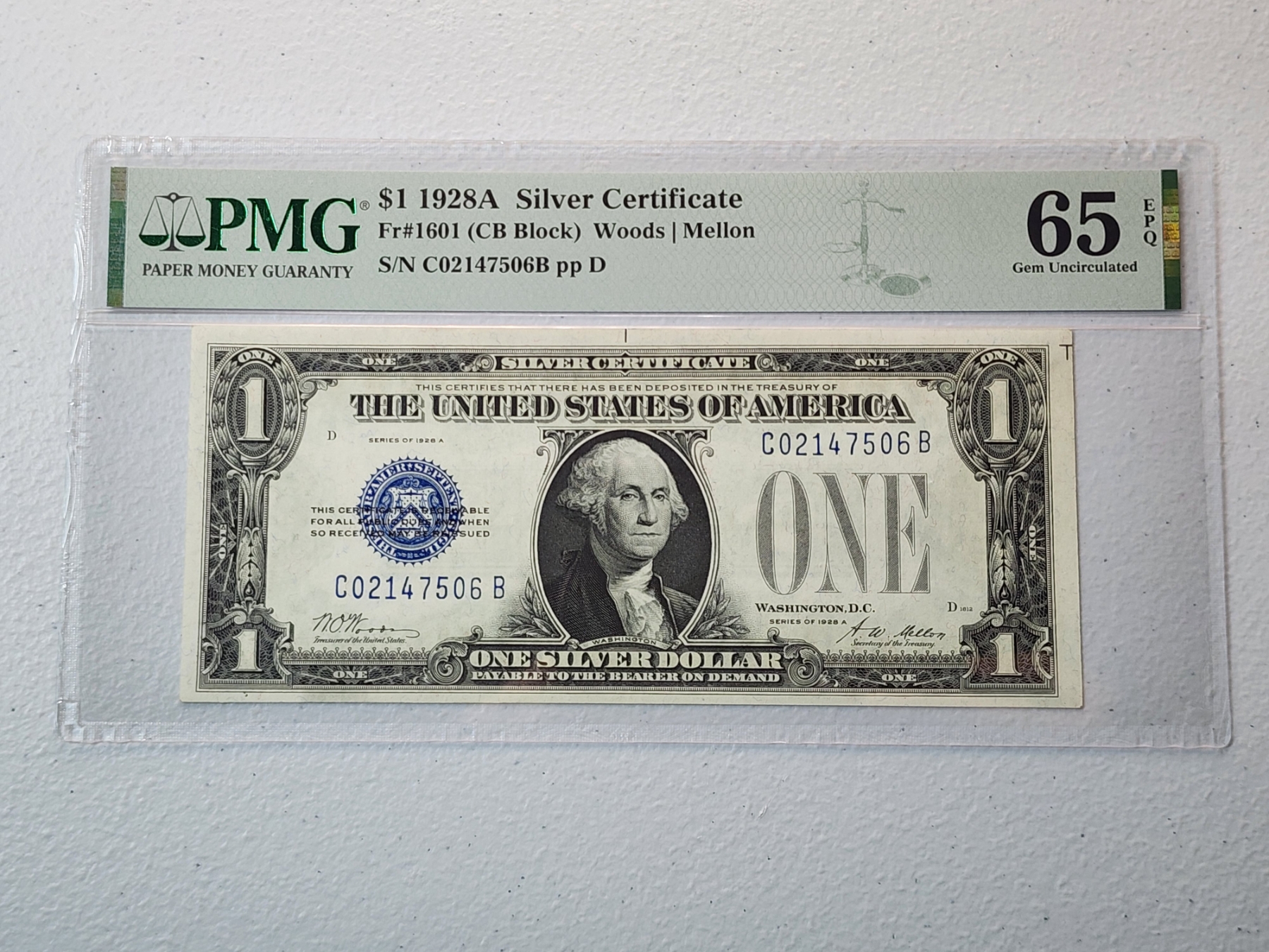 1928-A $1 Silver Certificate Funnyback Graded by PMG Gem Uncirculated 65 EPQ