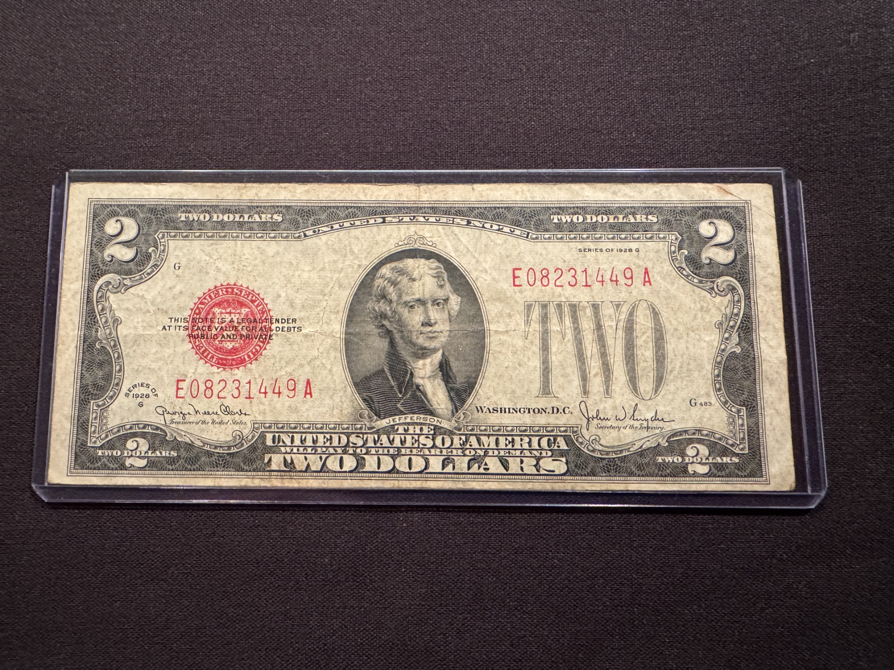 1928 United States Jefferson $2.00 Bill In Protective Holder