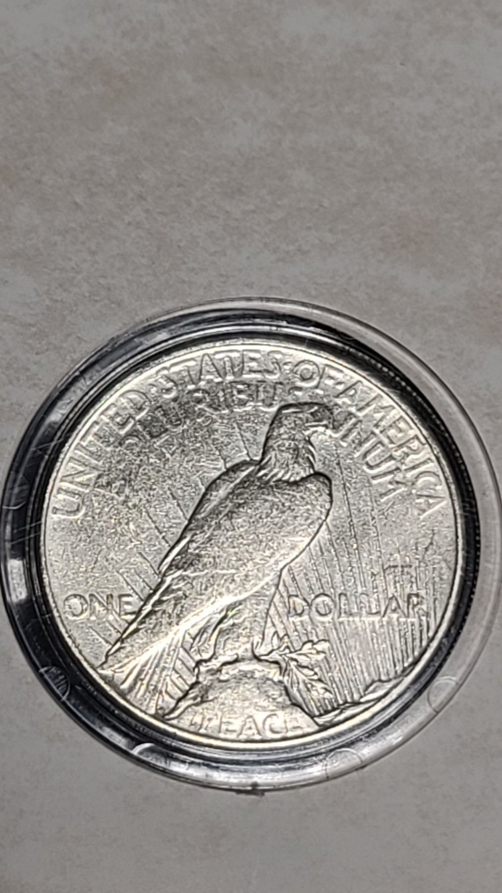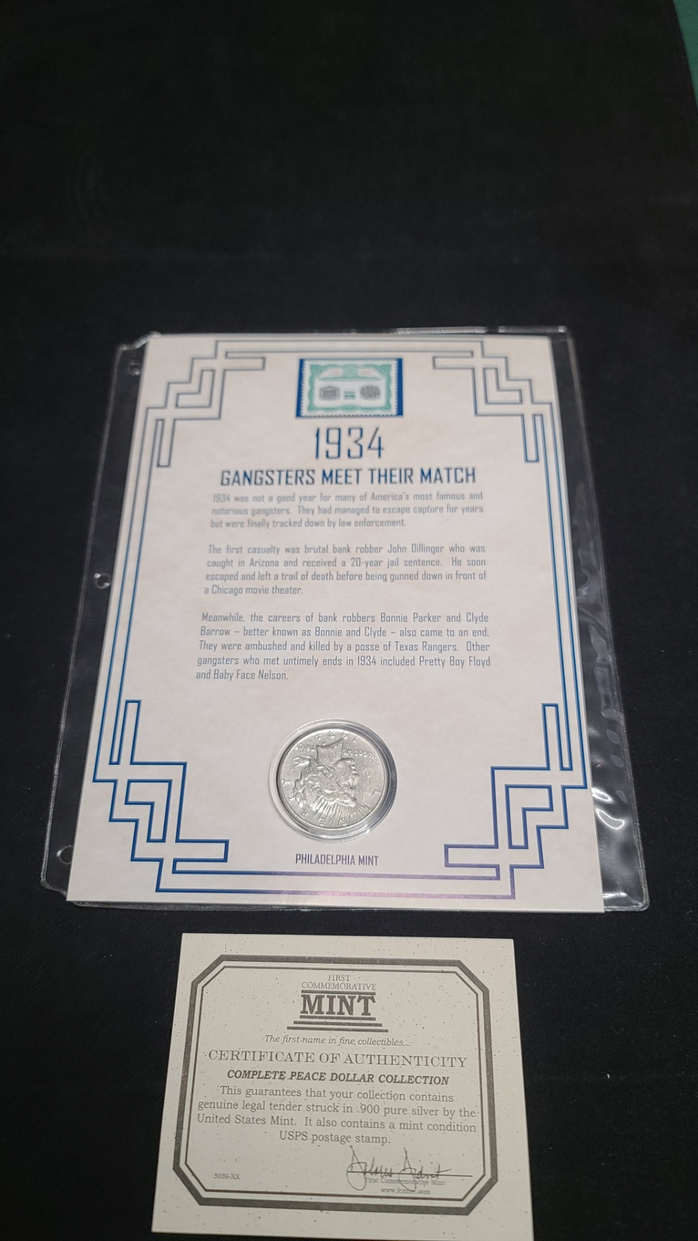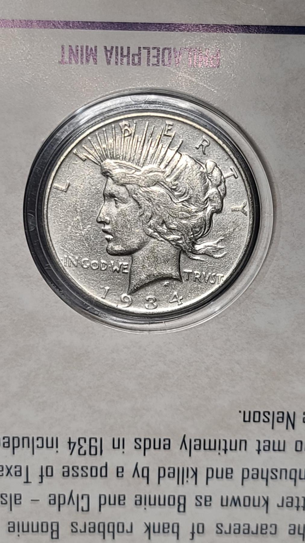 1934-P Silver Peace Dollar in First Commemorative Mint Display With Stamp