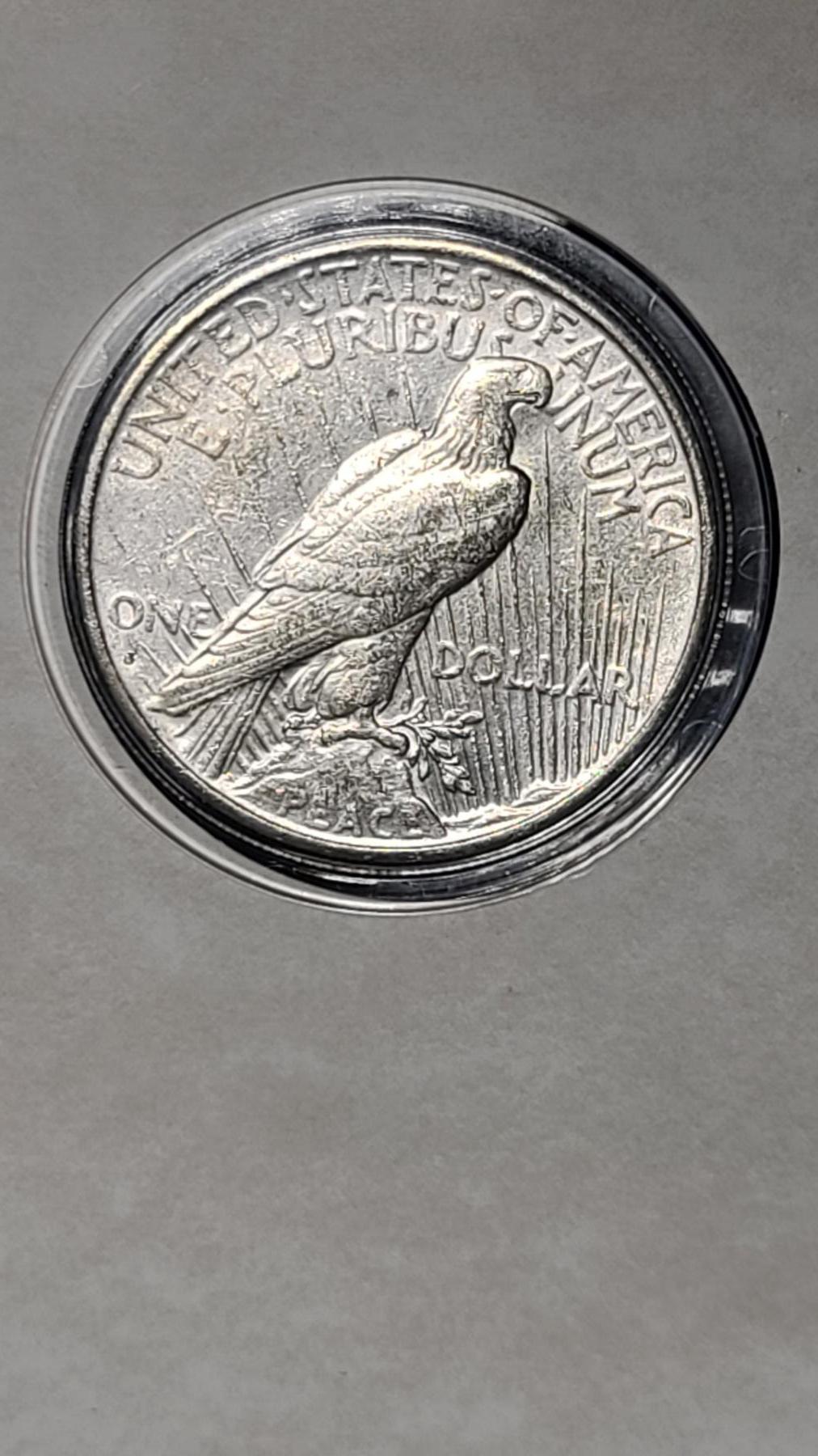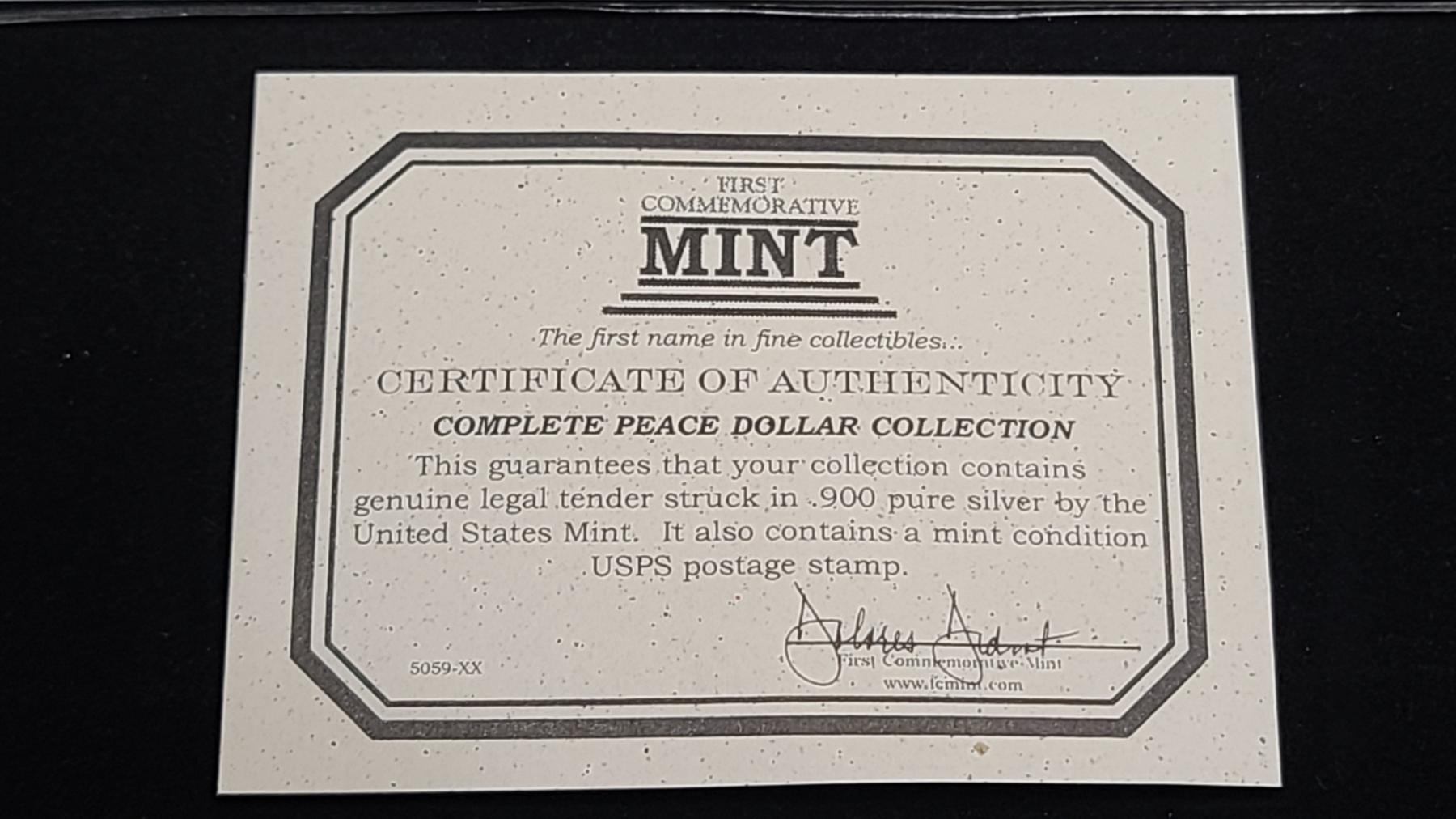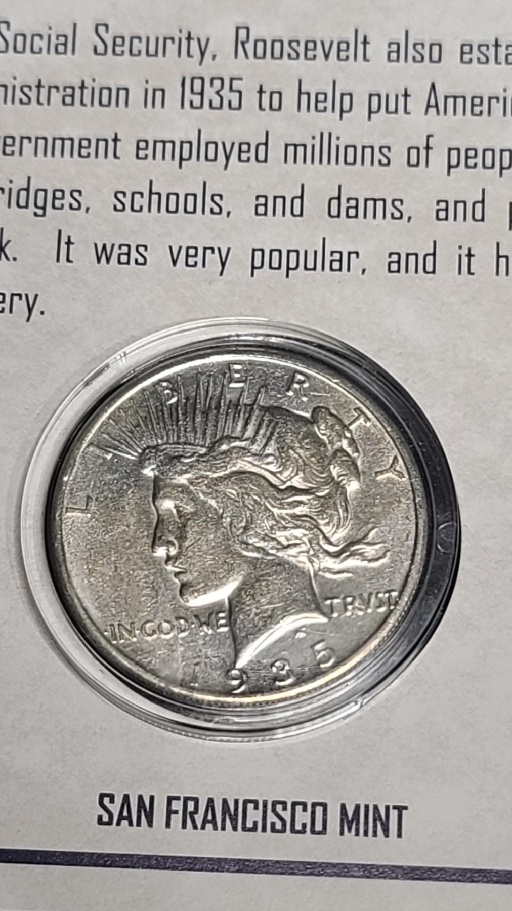 1935-S Silver Peace Dollar in First Commemorative Mint Display With Stamp