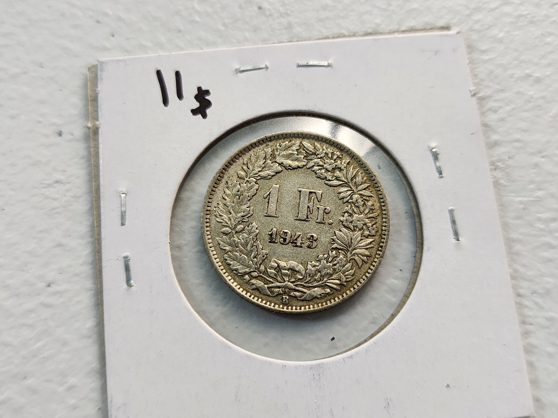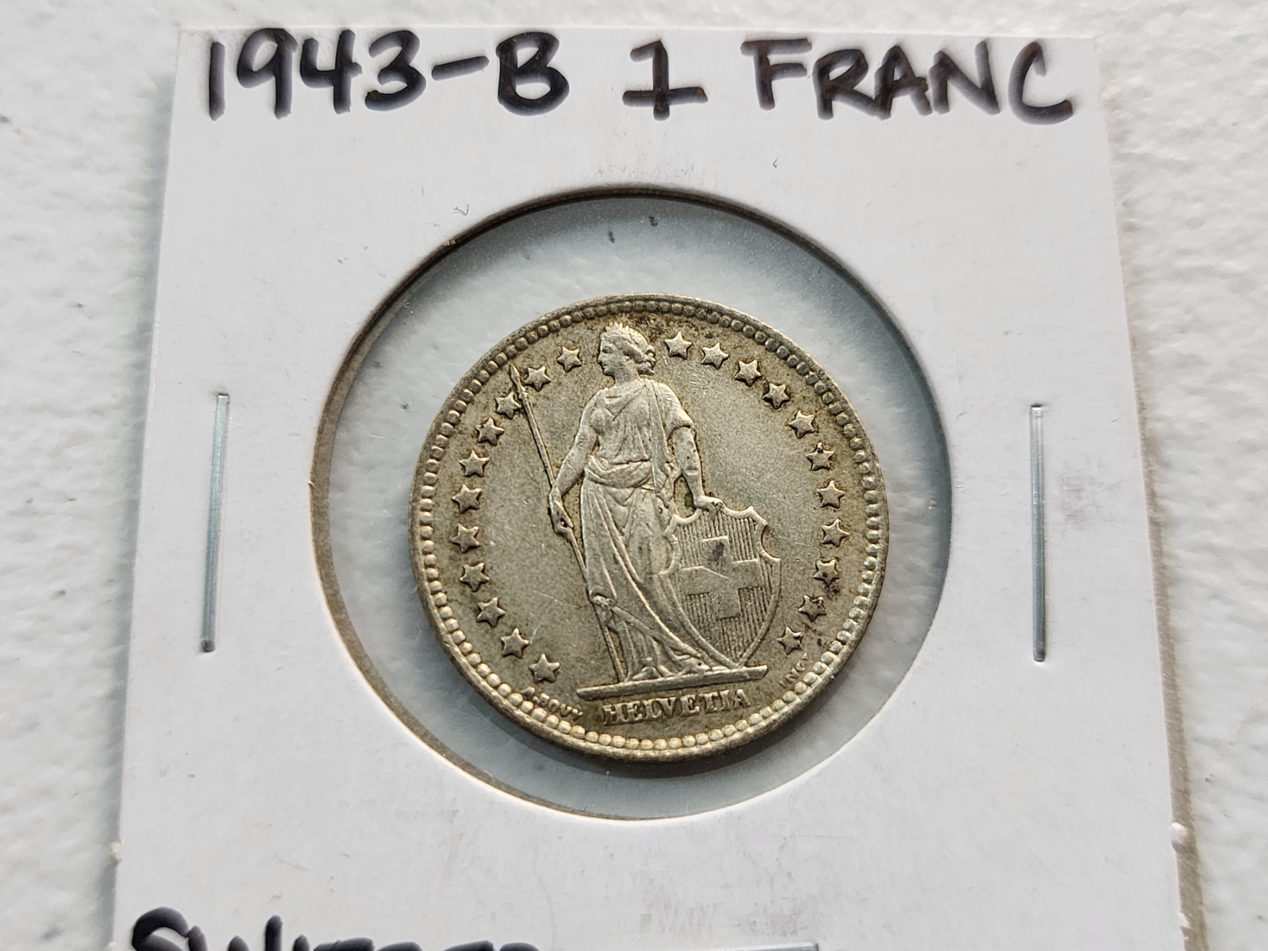 1943-B Switzerland 1 Franc Silver Coin ASW: 0.1342oz