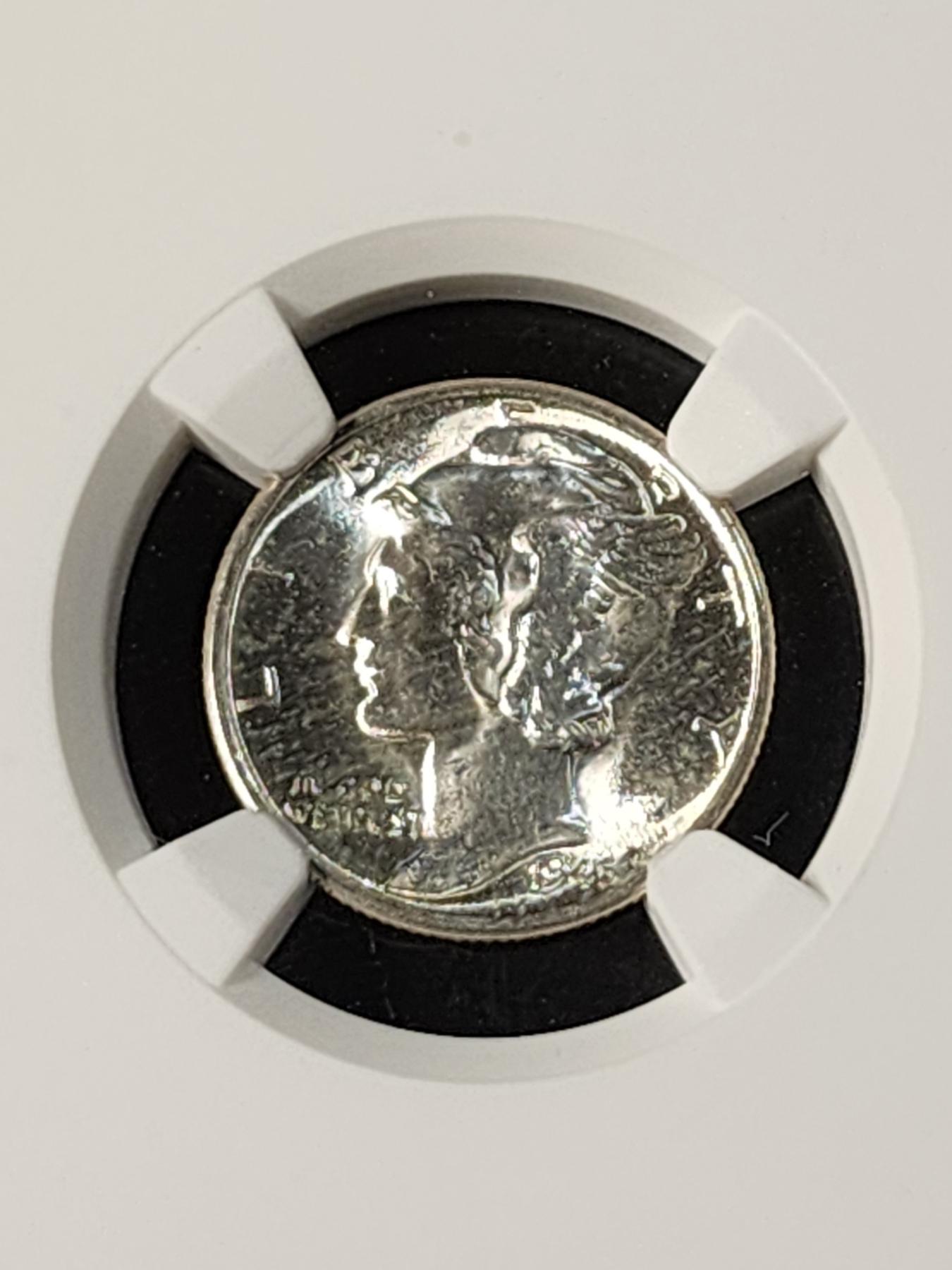 1945-D Mercury Dime Graded by NGC MS65