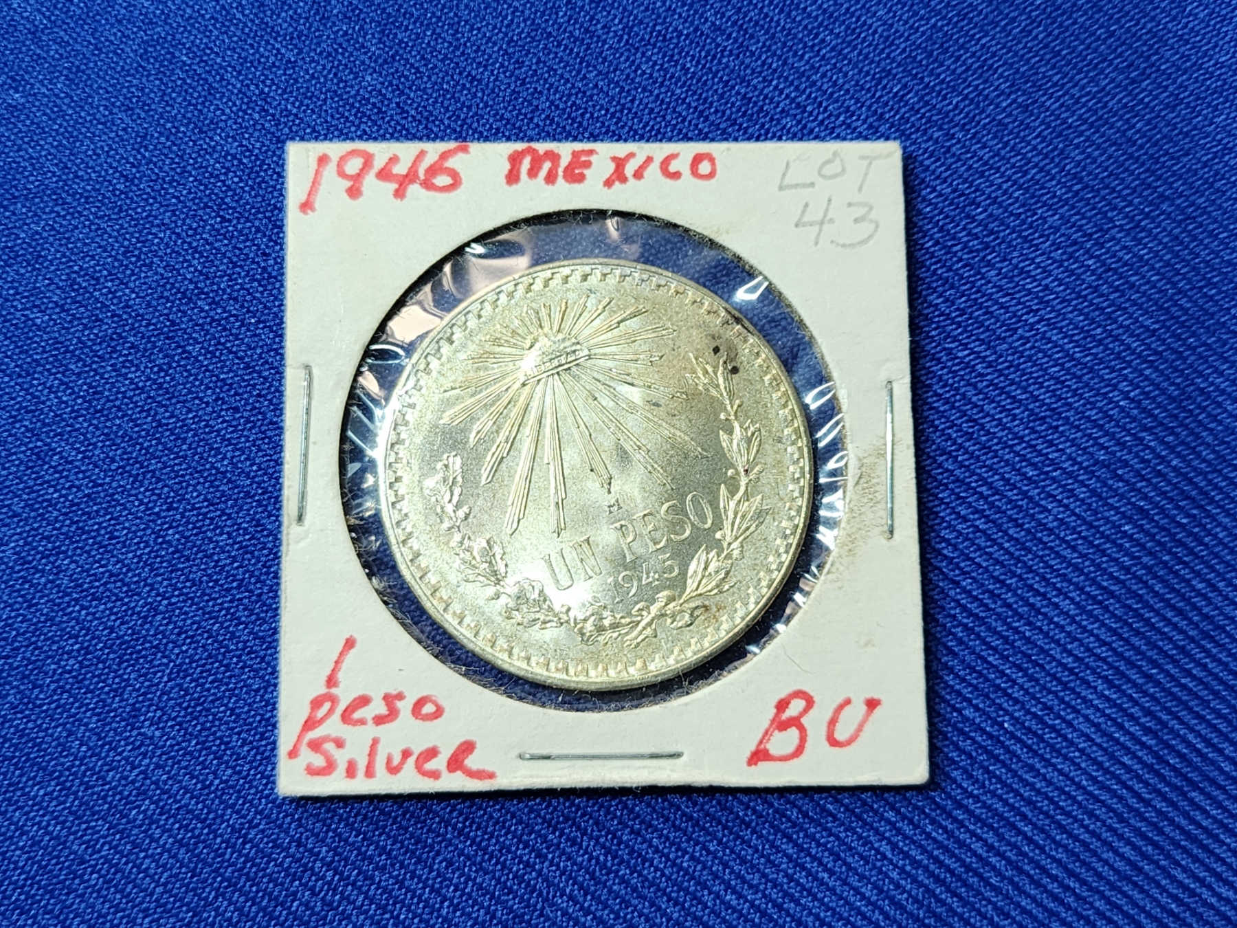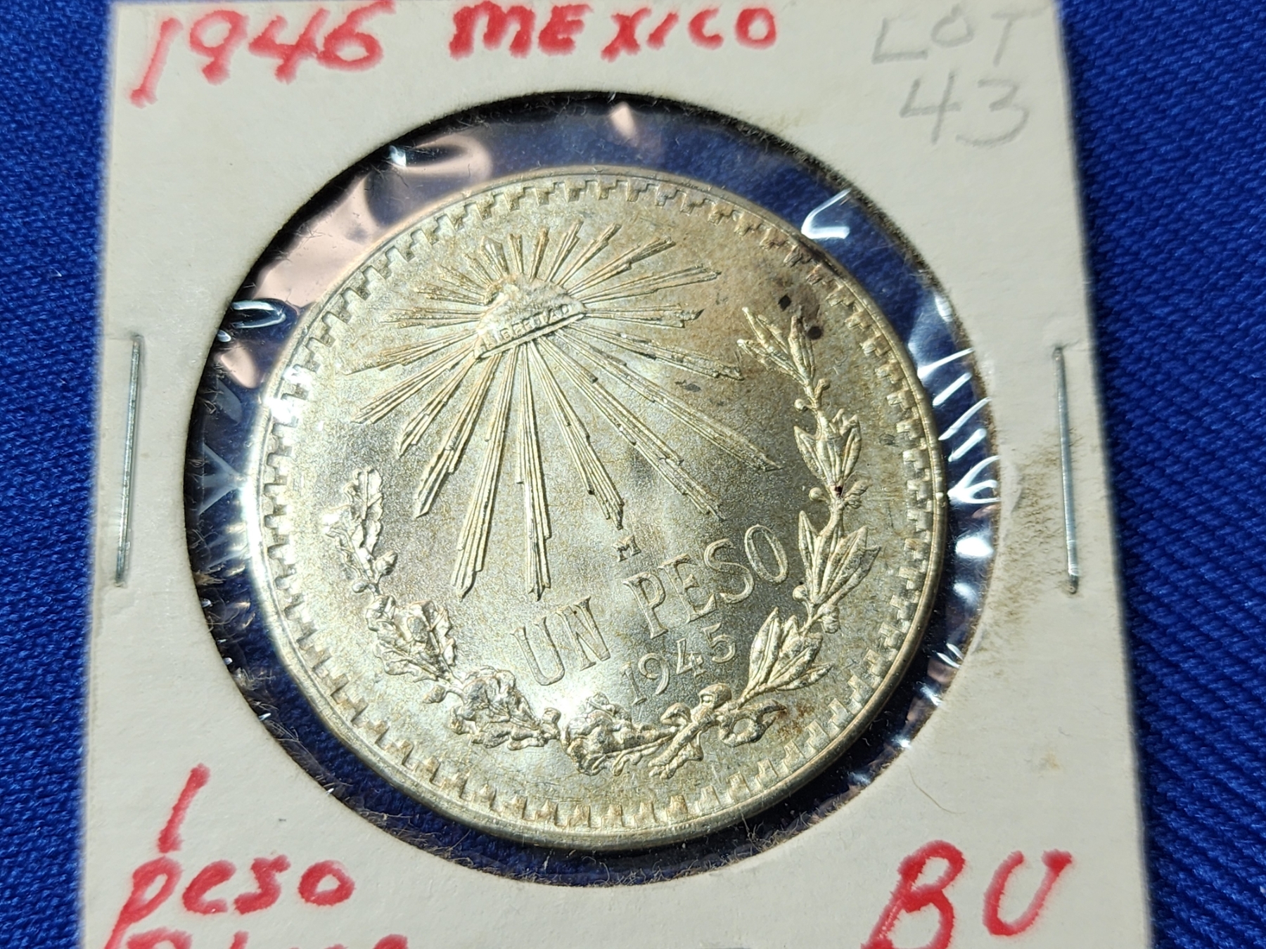 1945 Mexico 1 Peso Silver Coin - Brilliant Uncirculated ASW: 0.3857oz