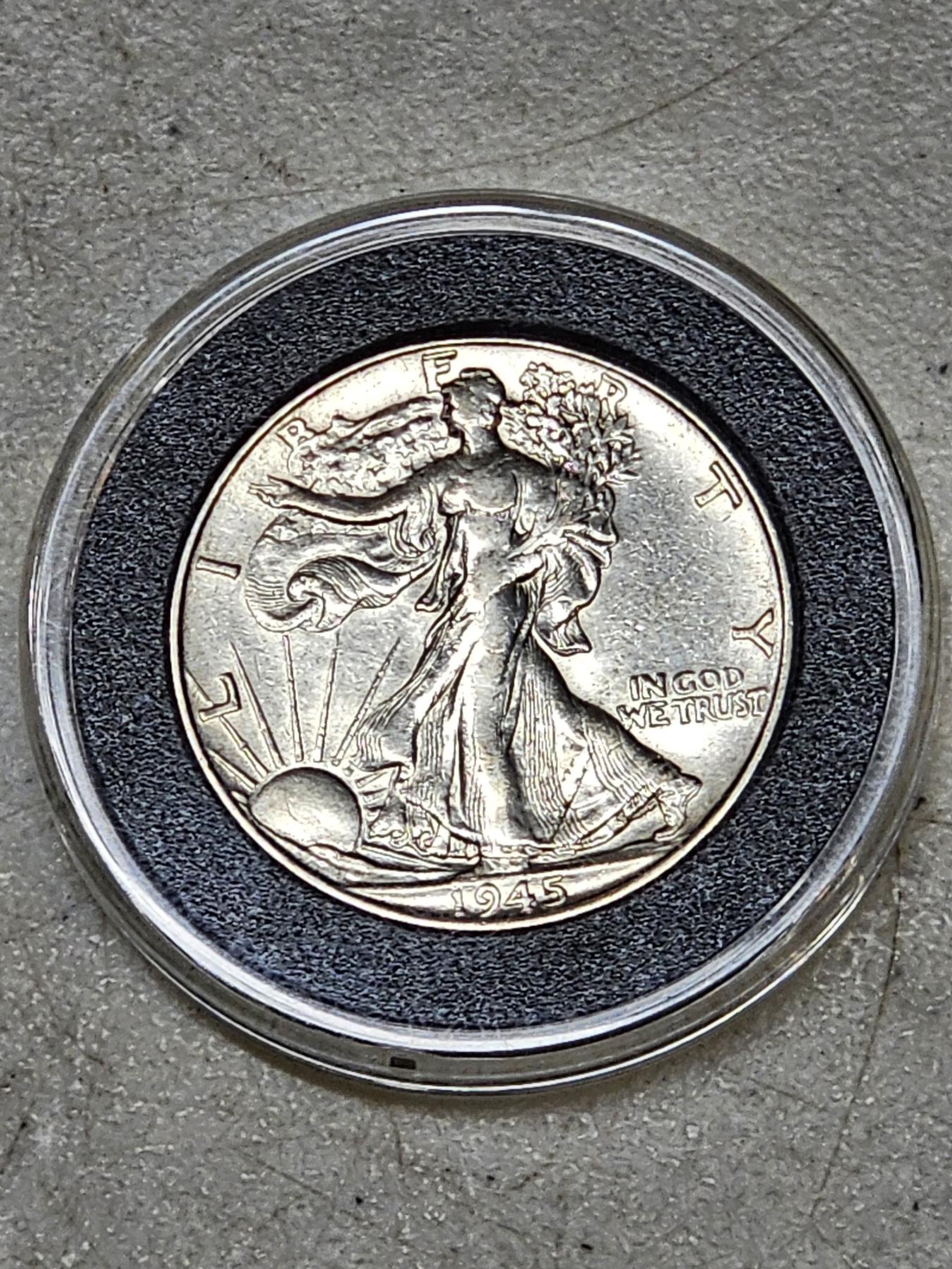 1945 U.S. 90% Silver Walking Liberty Half Dollar in Case - GREAT CONDITION!!! A MUST HAVE FOR ANY COIN COLLECTOR!!! PLACE YOUR BID TODAY!!!