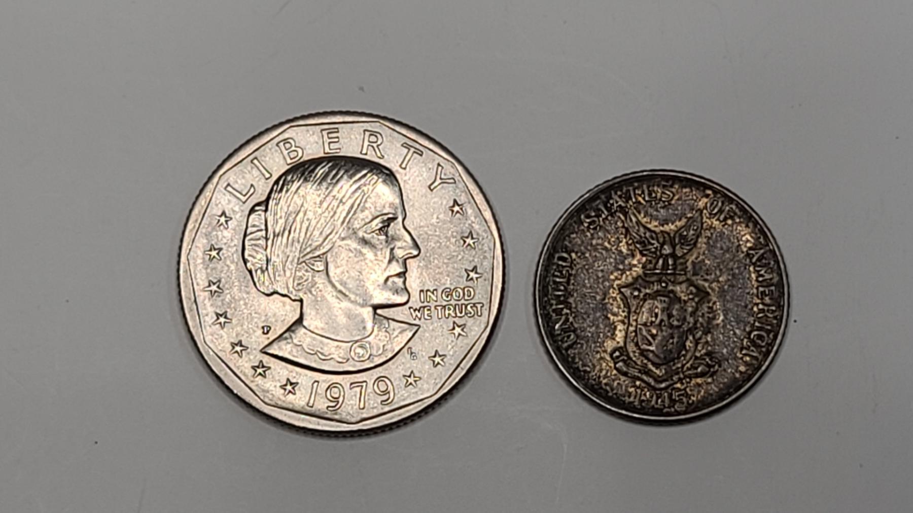1945 U.S. Philippines 1945 75% Silver 20 Centavos Coin & 1979-P Susan B. Anthony Dollar Coin