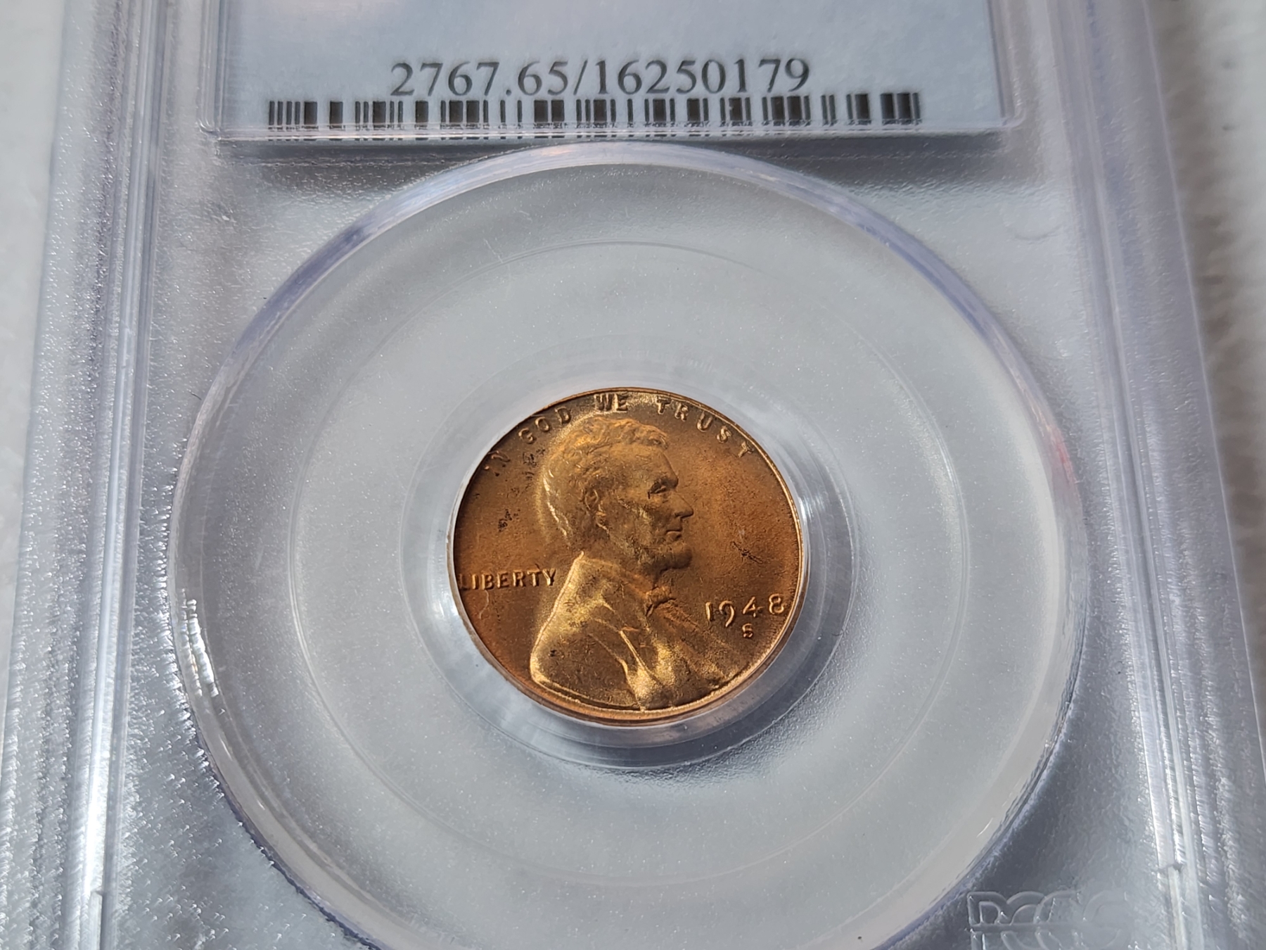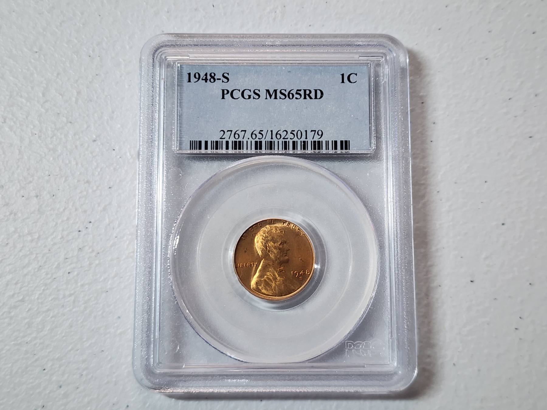 1948-S Lincoln Wheat Cent Graded by PCGS MS 65 RED