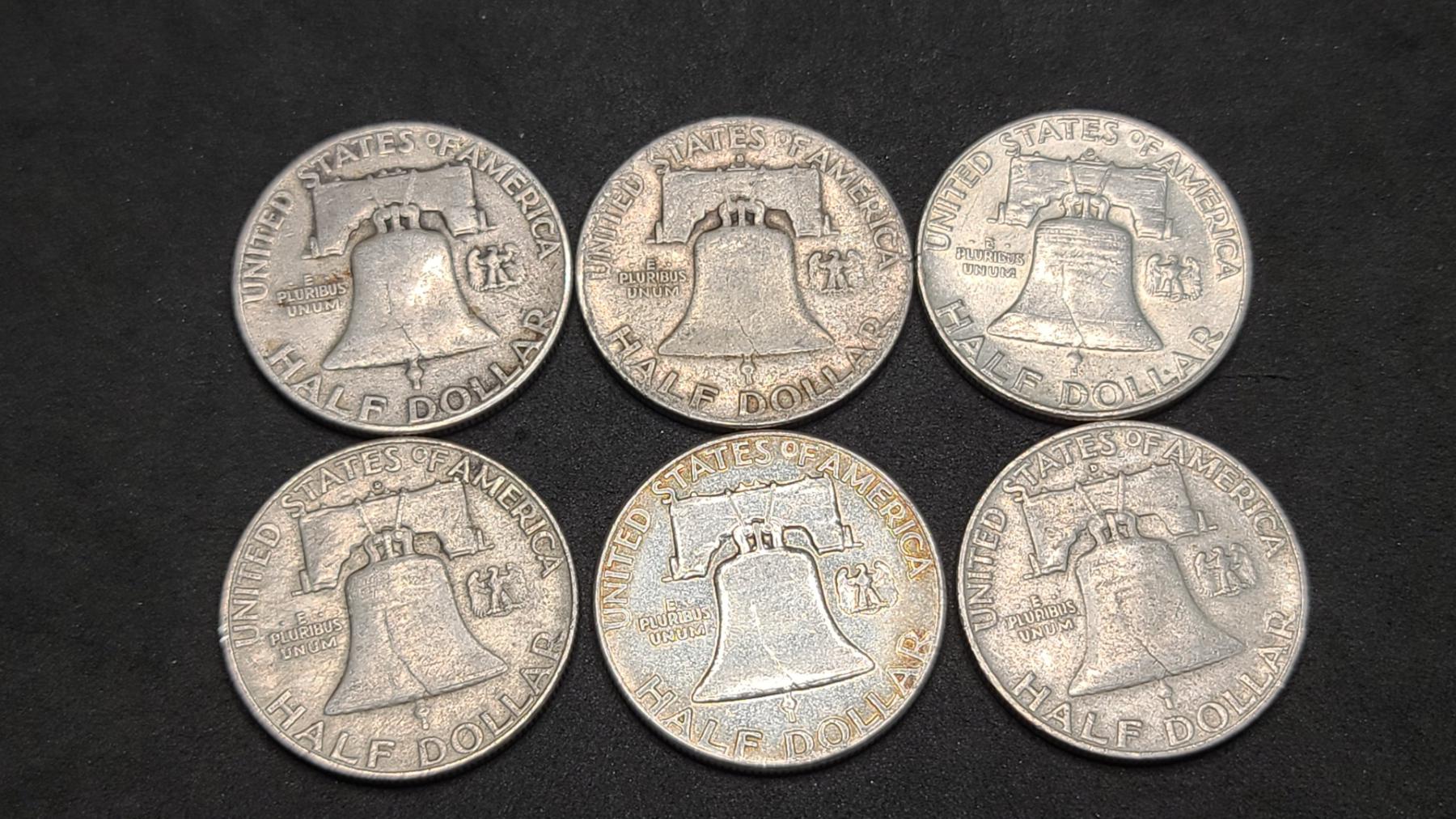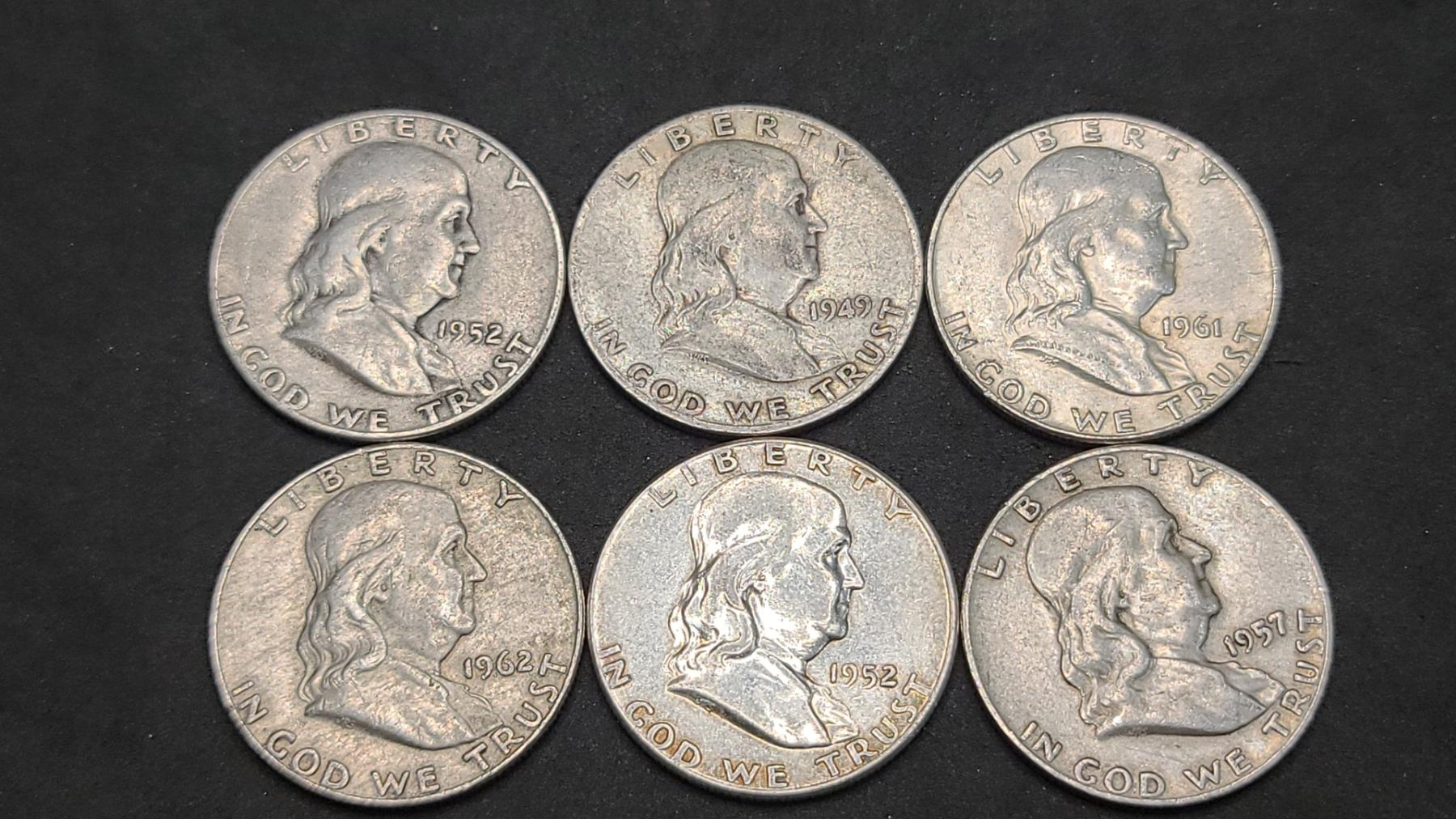 1949, 1952, 1957, 1961, 1962 90% Silver Franklin Half Dollars - Face Value: $3.00