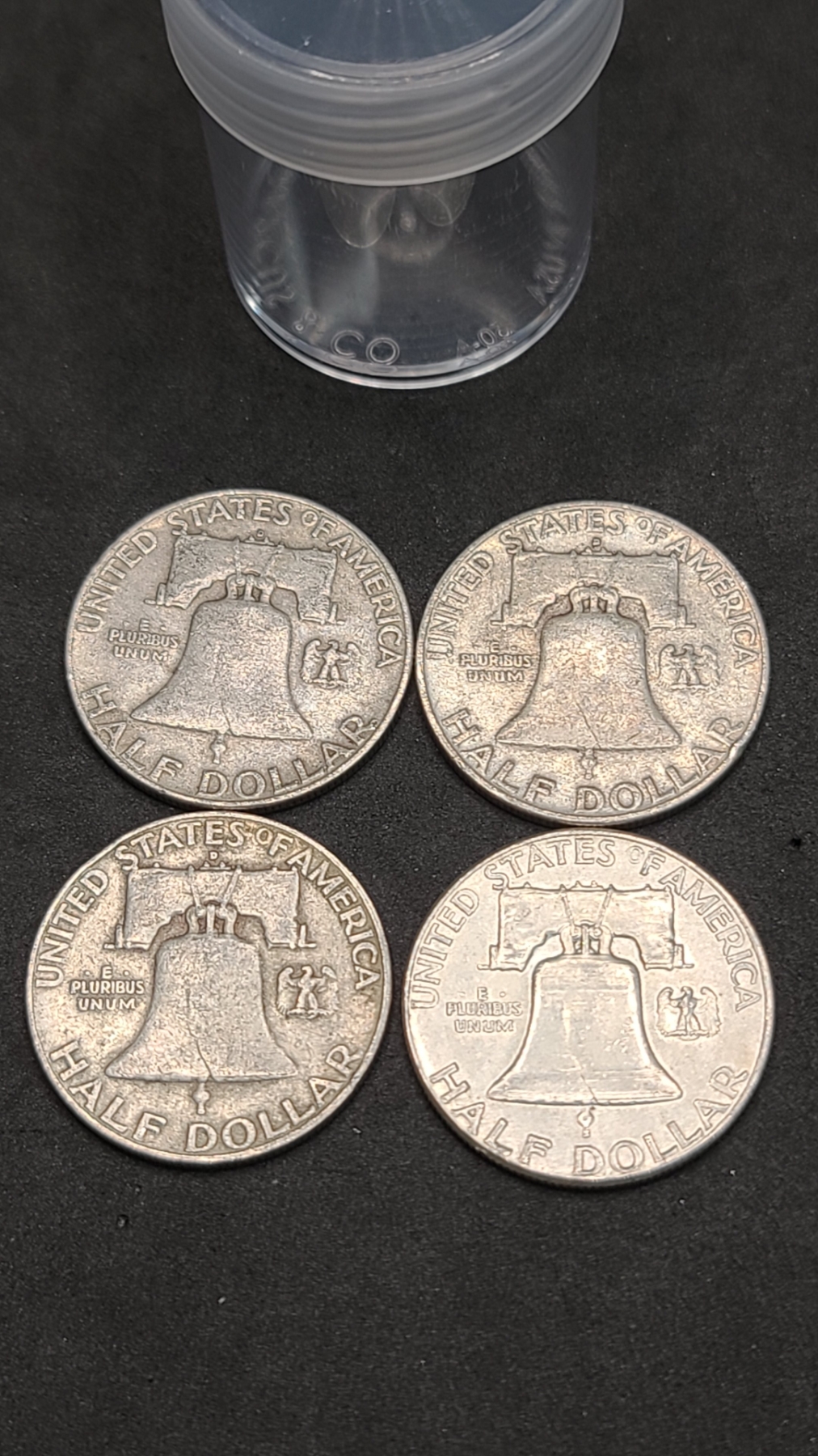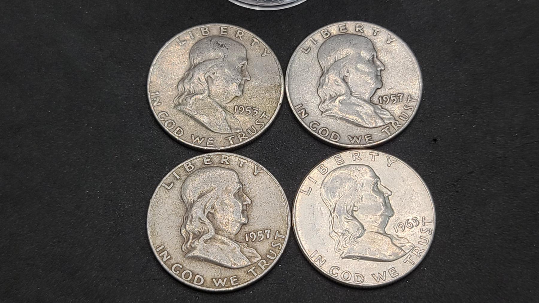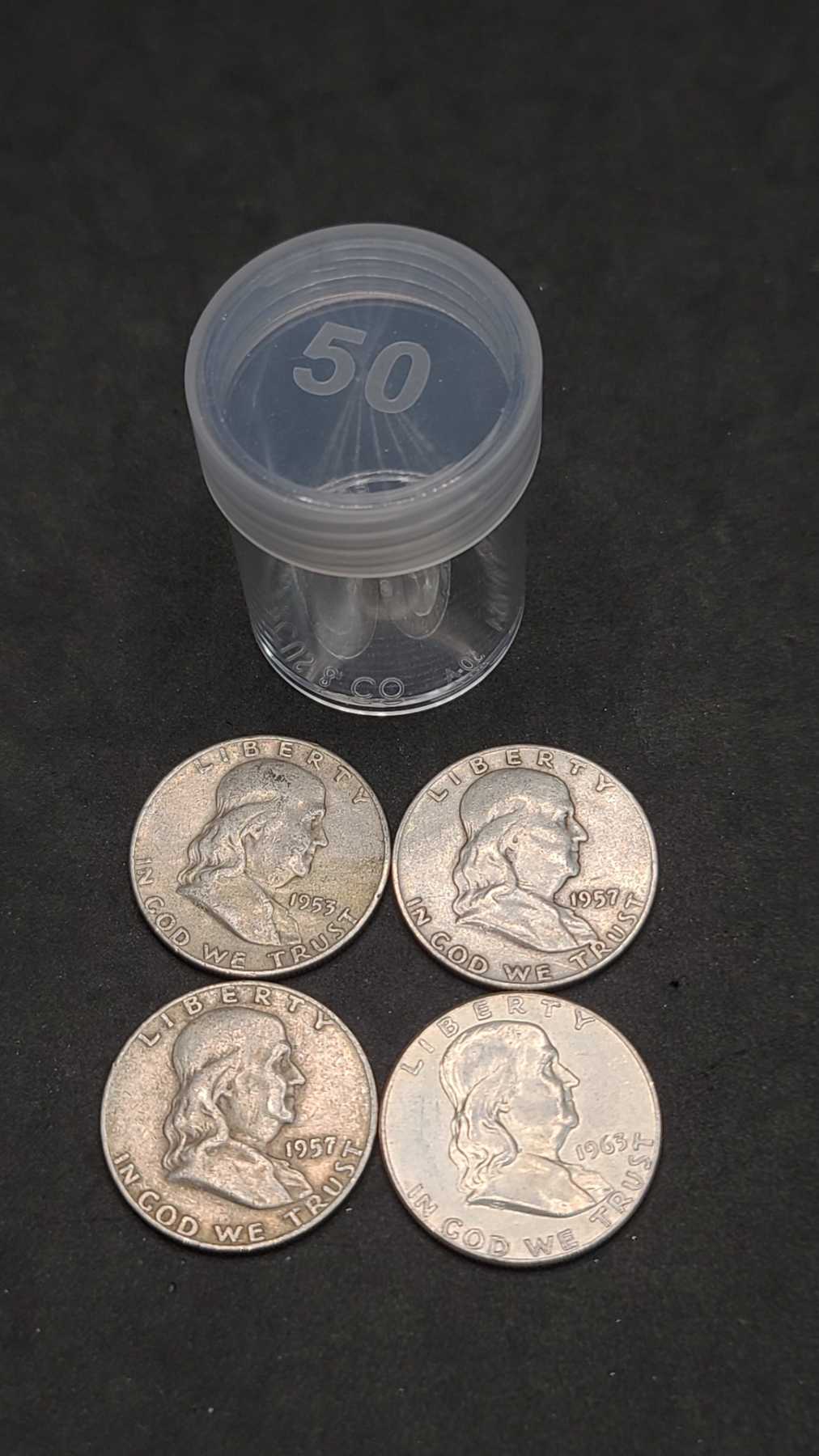 1953, 1957, 1963 90% Silver Franklin Half Dollars In Coin Holder - Face Value: $2.00