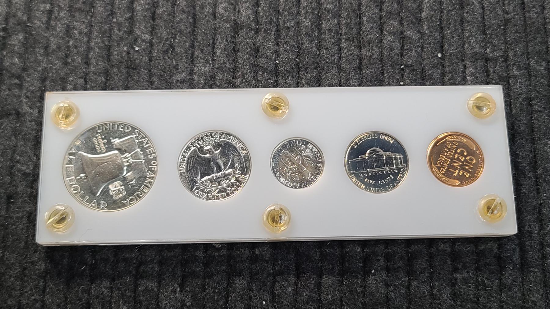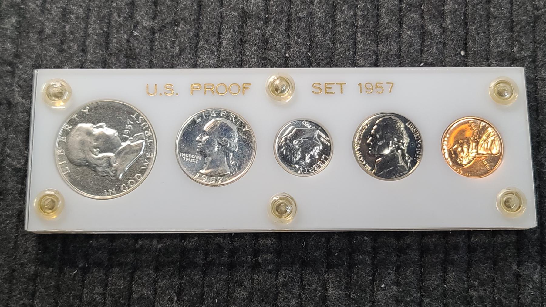 1957 U.S Proof Set In Acrylic Display Face Value .85 Cents Is 90% Silver